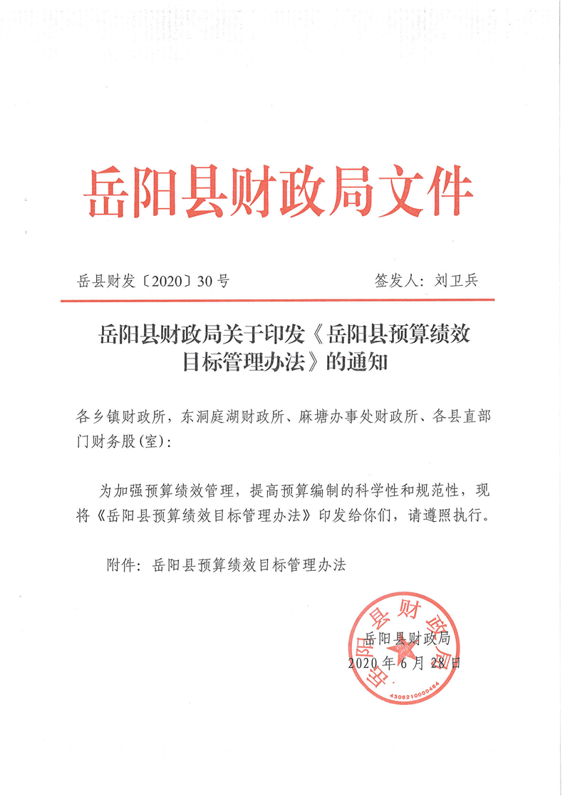 岳阳县财政局关于印发《岳阳县预算绩效目标管理办法》的通知