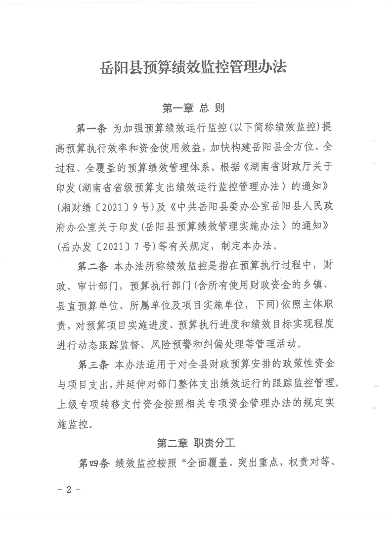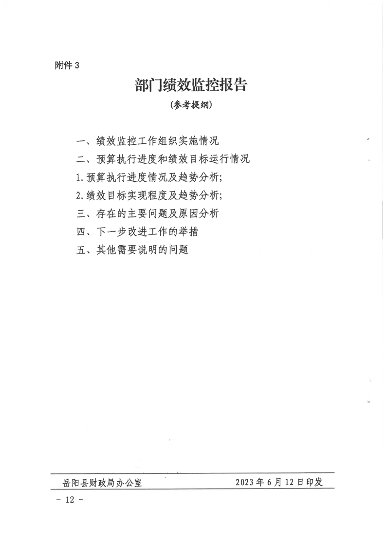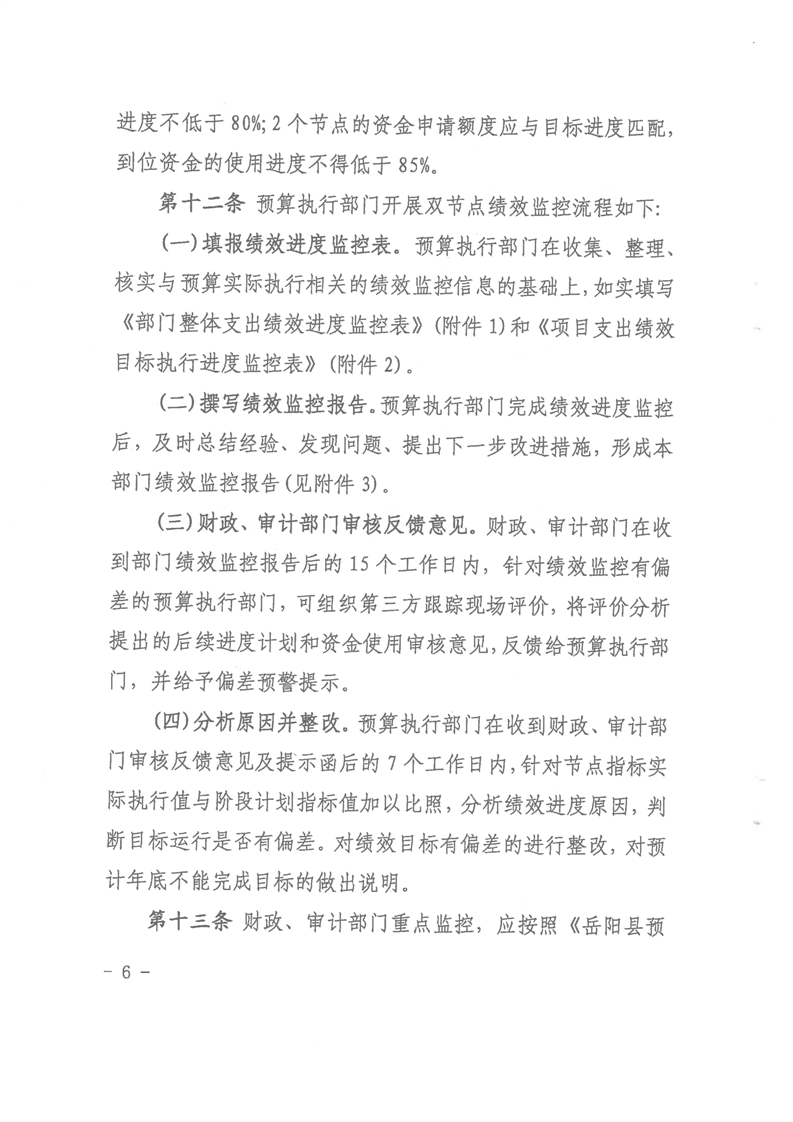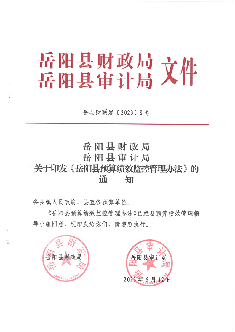 岳阳县财政局岳阳县审计局关于印发《岳阳县预算绩效监控管理办法》的通知