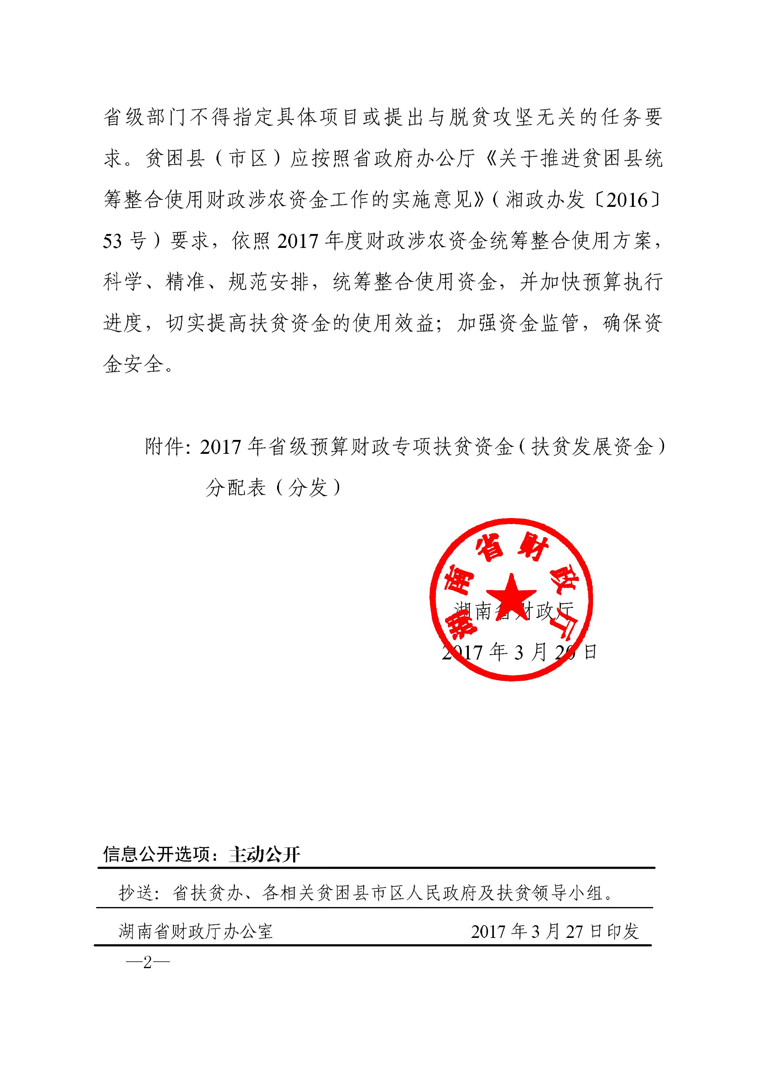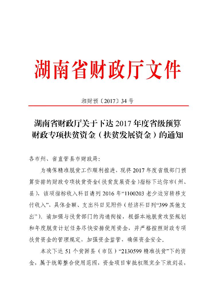 关于下达2017年度省级预算财政专项扶贫资金(扶贫发展资金)的通知