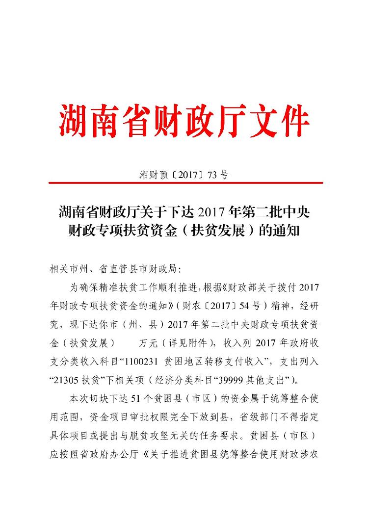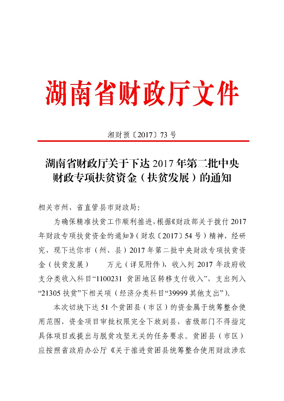 关于下达2017年第二批中央财政专项扶贫资金(扶贫发展)的通知