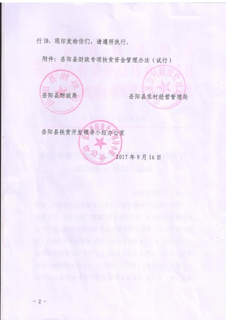关于印发岳阳县财政专项扶贫资金管理办法的通知