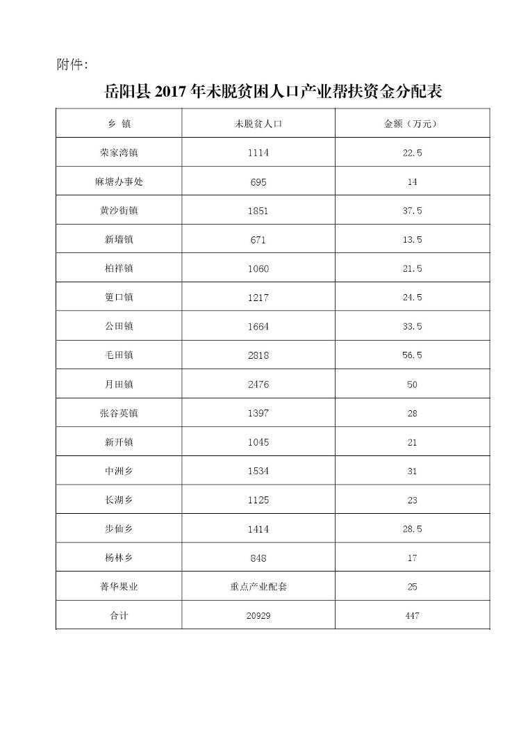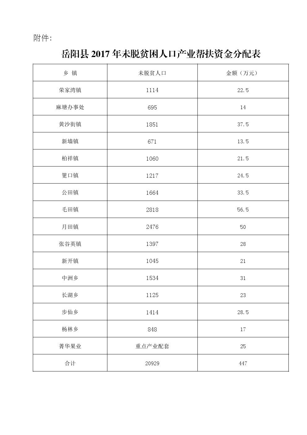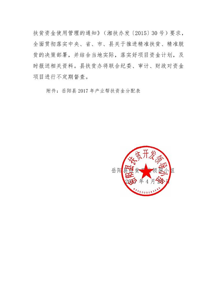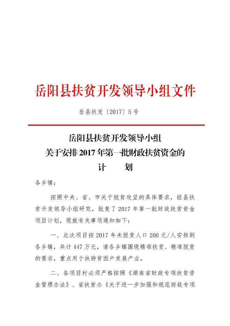岳县扶发【2017】5号——关于安排2017年第一批财政扶贫资金的计划