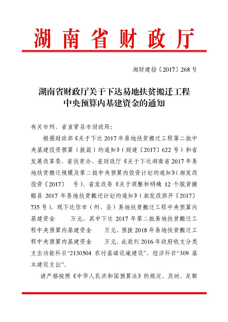 2017年易地扶贫搬迁工程中央预算内基建资金明细表(岳阳县)
