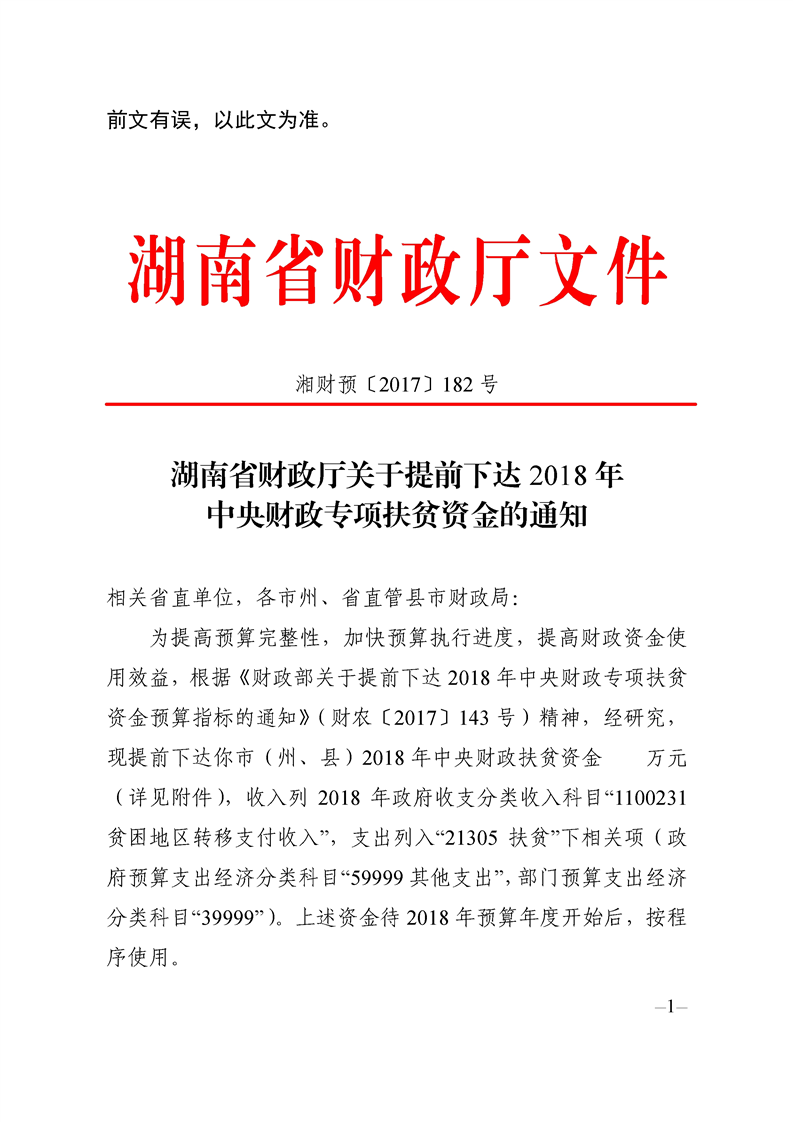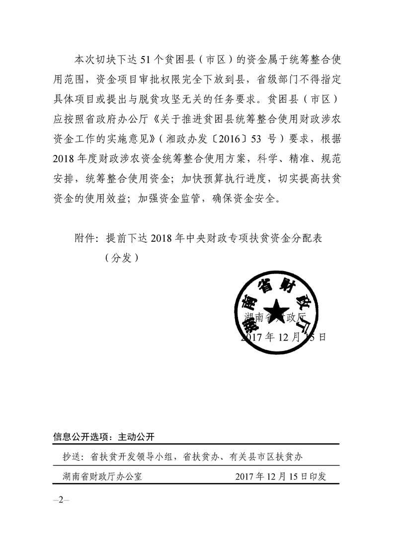 2018年中央财政专项扶贫资金分配表(岳阳县)