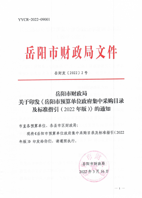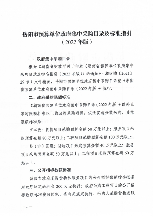 岳阳市财政局关于印发《岳阳市预算单位政府集中采购目录及标准指引(2022年版)》的通知