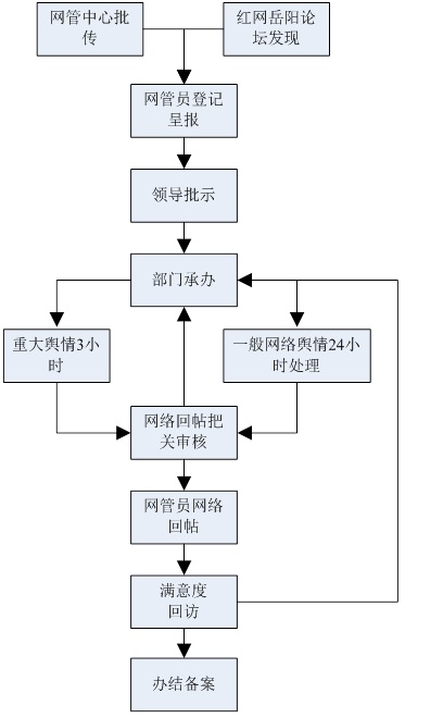 第五条 重要的网络舆情应在发现后的3小时内及时处置,一般性的网络舆情应在24小时内及时处置。网络舆情管理员收到网络舆情,或者发现网络舆情后,要及时反映给部门负责人、局领导,以便及时作出处理。