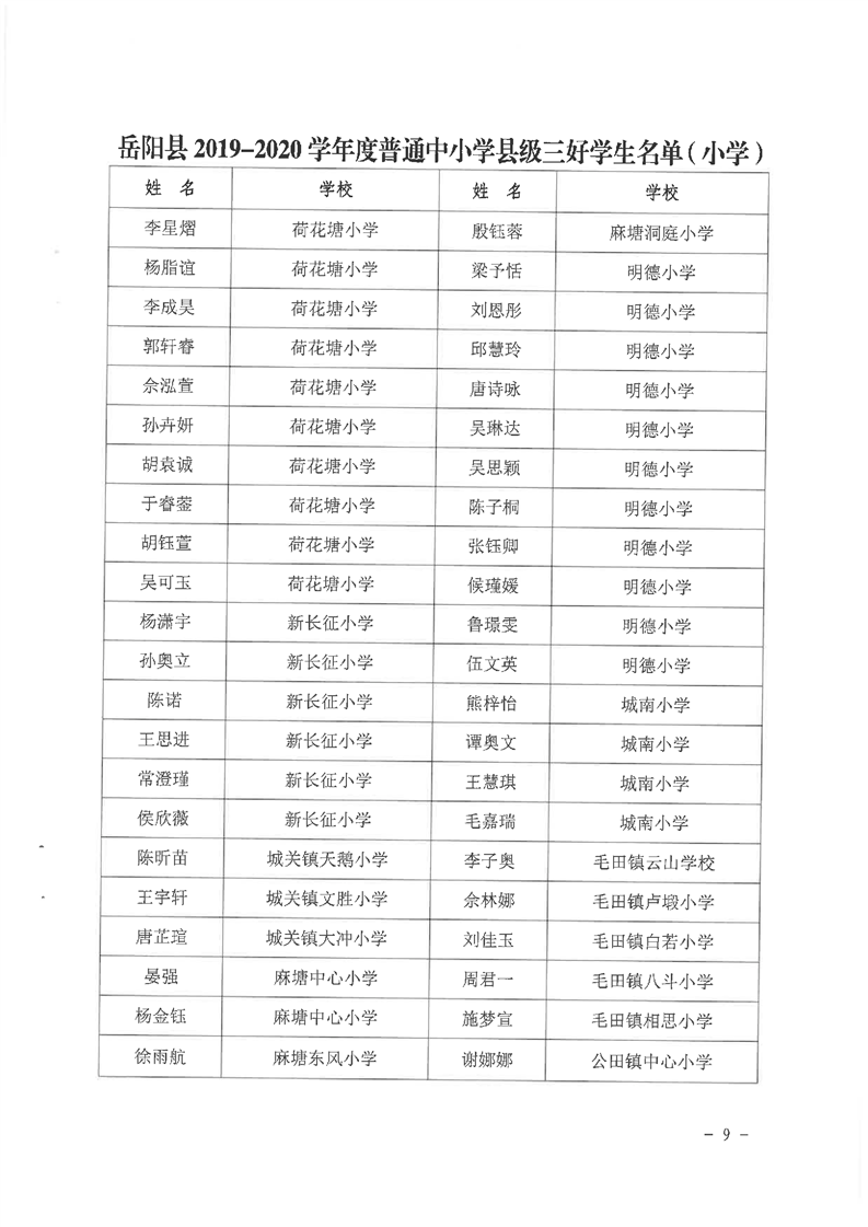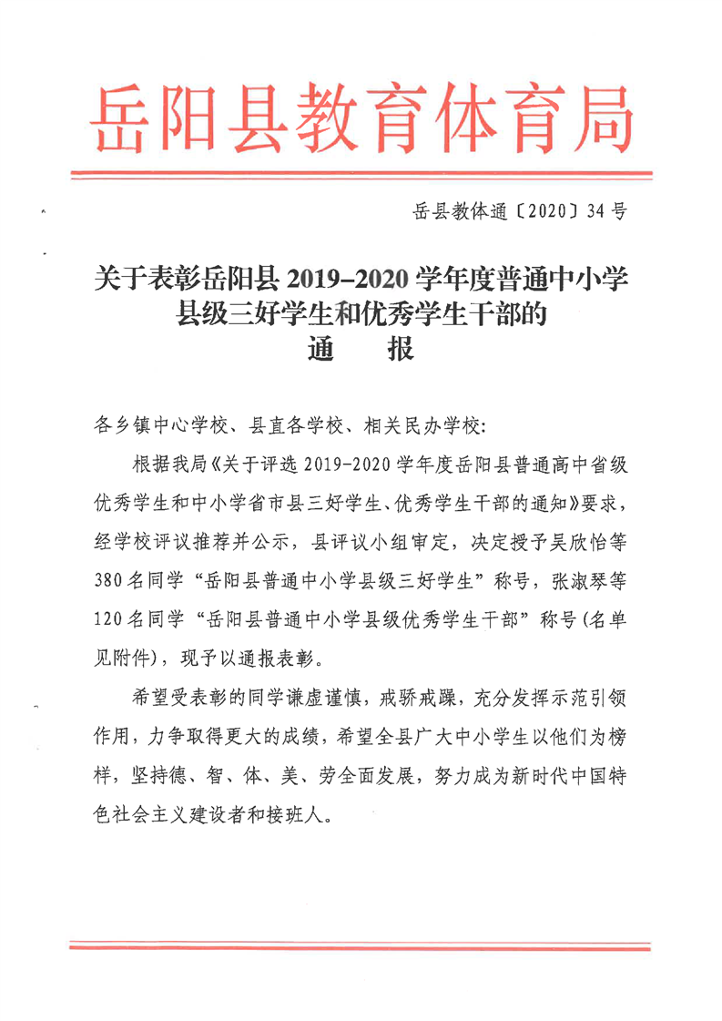 关于表彰2019-2020年度学省市县级优秀学生的通报