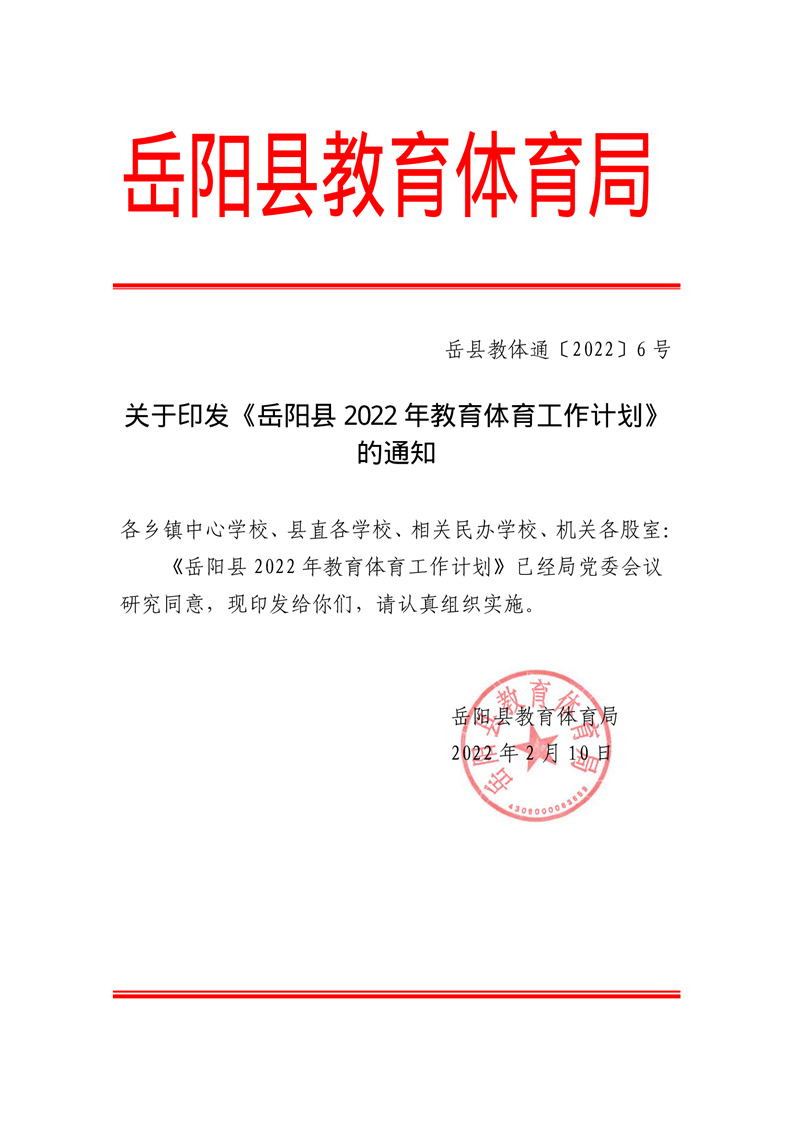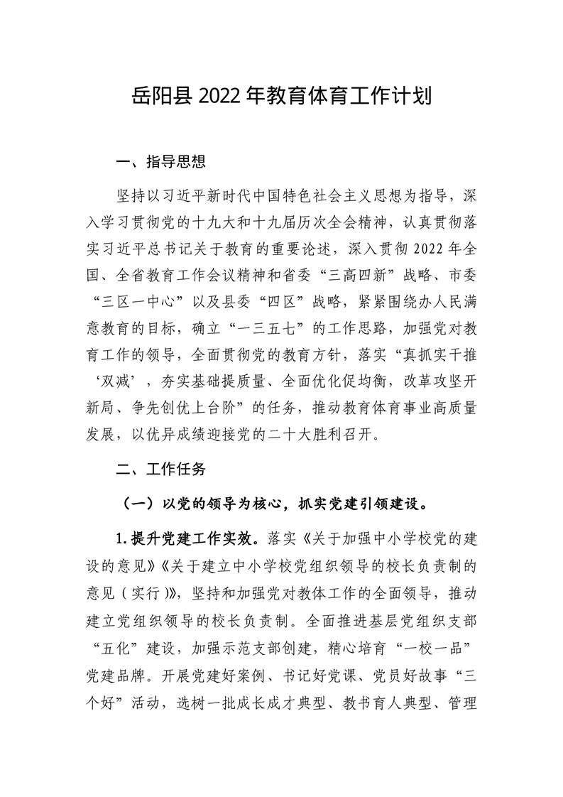 岳阳县2022年教育体育工作计划