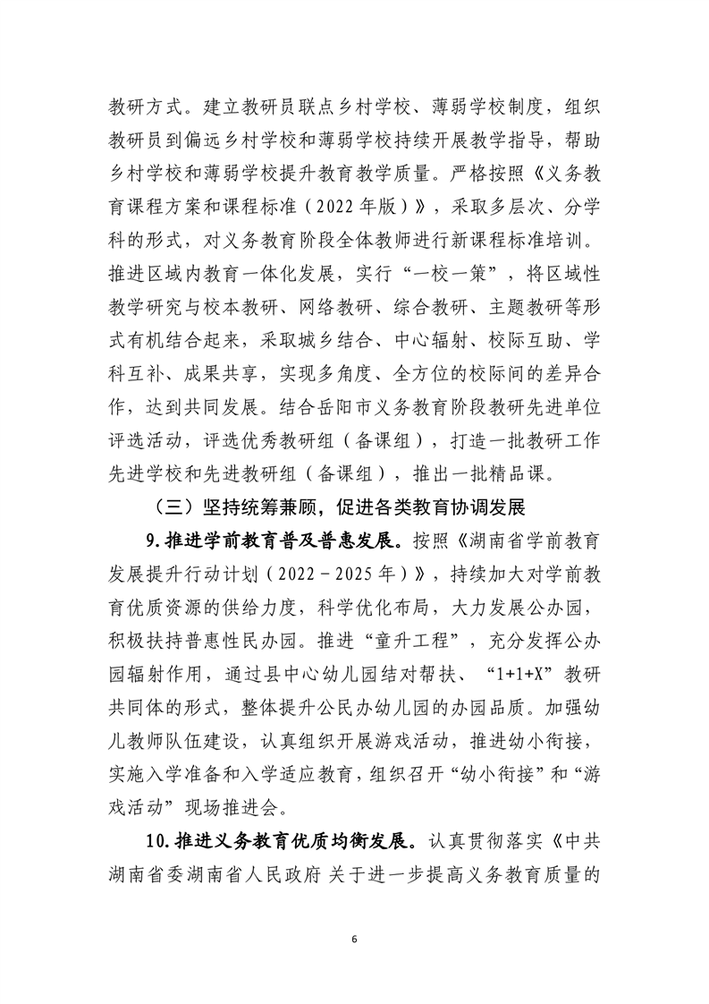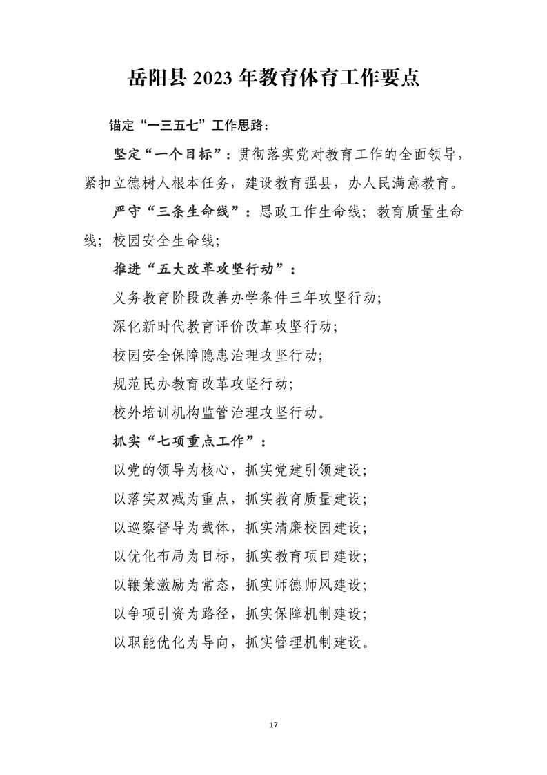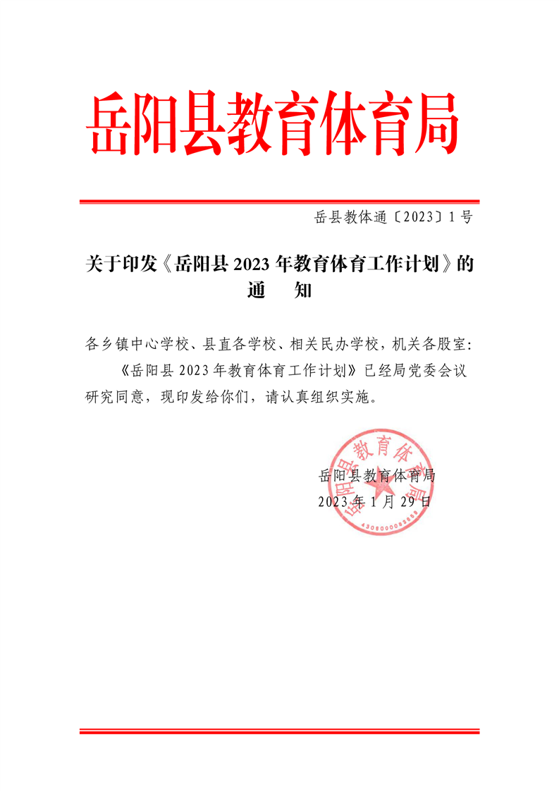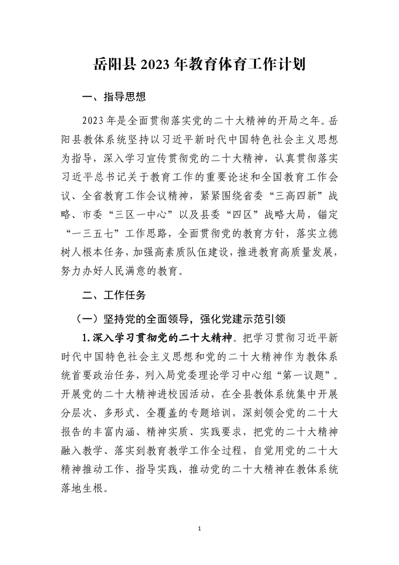 岳阳县2023年教育体育工作计划