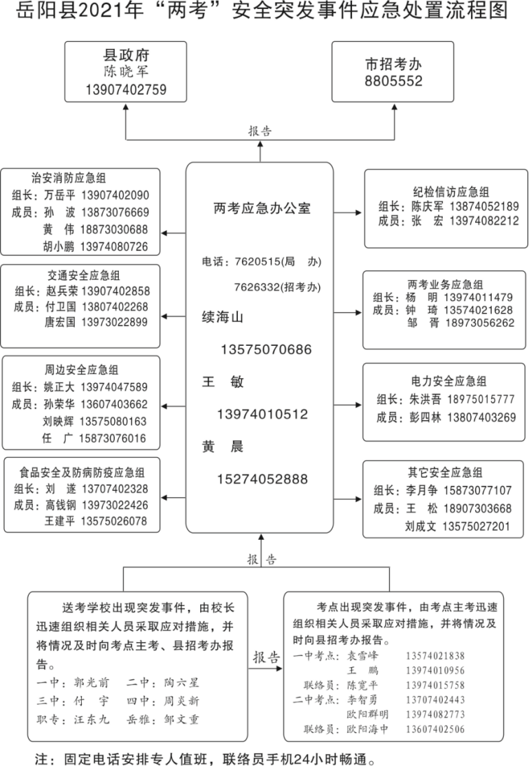 附:岳阳县2021年两考安全突发事件应急处置流程图