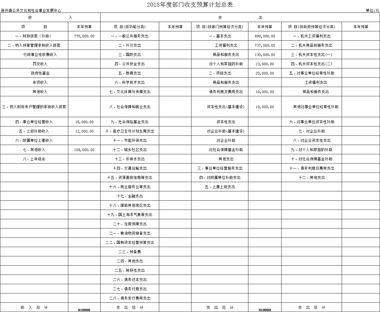 2018年新开镇社发中心预算表