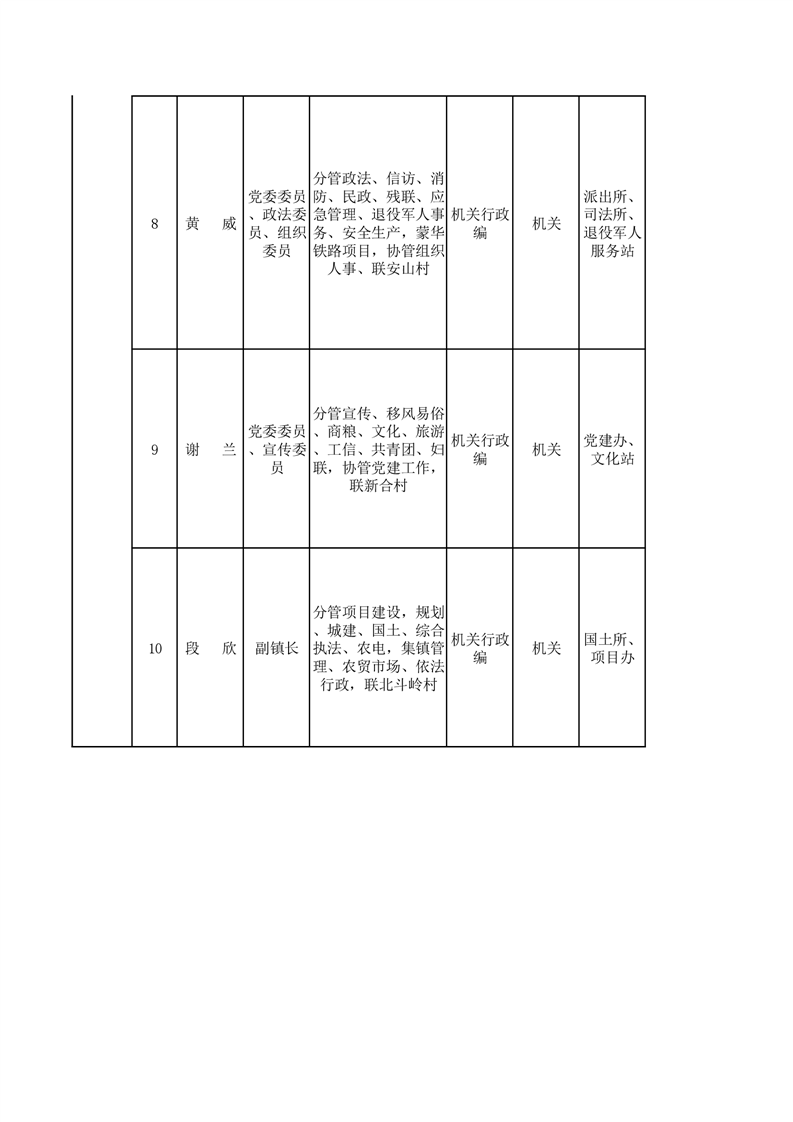 2021年步仙镇党政班子成员工作分工