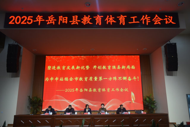 湖南教育新闻网讯(通讯员 万石正 李振远)东风撒雨露,会入天地春。2月8日,岳阳县召开2025年教育体育工作会议,传达学习全省教育大会精神,盘点总结2024年教育工作,分析教育工作面临的新形势新任务,安排部署2025年教育重点工作,进一步统一思想,凝聚共识,振奋精神,确保牢牢站稳全市教育质量第一方阵,奋力推进岳阳县教体事业高质量发展。县委副书记、政法委书记宋华,县人大常委会副主任彭碧芳,县人民政府副县长续广宁,县政协副主席张忠新出席会议。