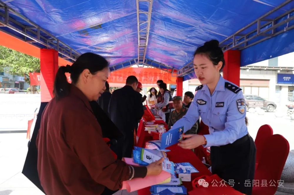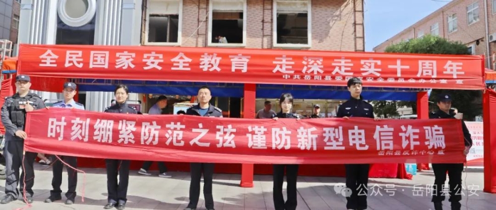 2025年4月15日,在第十个全民国家安全教育日到来之际,岳阳县公安局紧扣“全民国家安全教育 走深走实十周年”主题,组织国保大队、指挥中心、反诈中心、巡特警大队组成宣传组,在东方盛世商业广场开展普法宣传活动,推动国家安全教育深入群众、贴近民生,营造“国家安全、人人有责”的浓厚社会氛围。