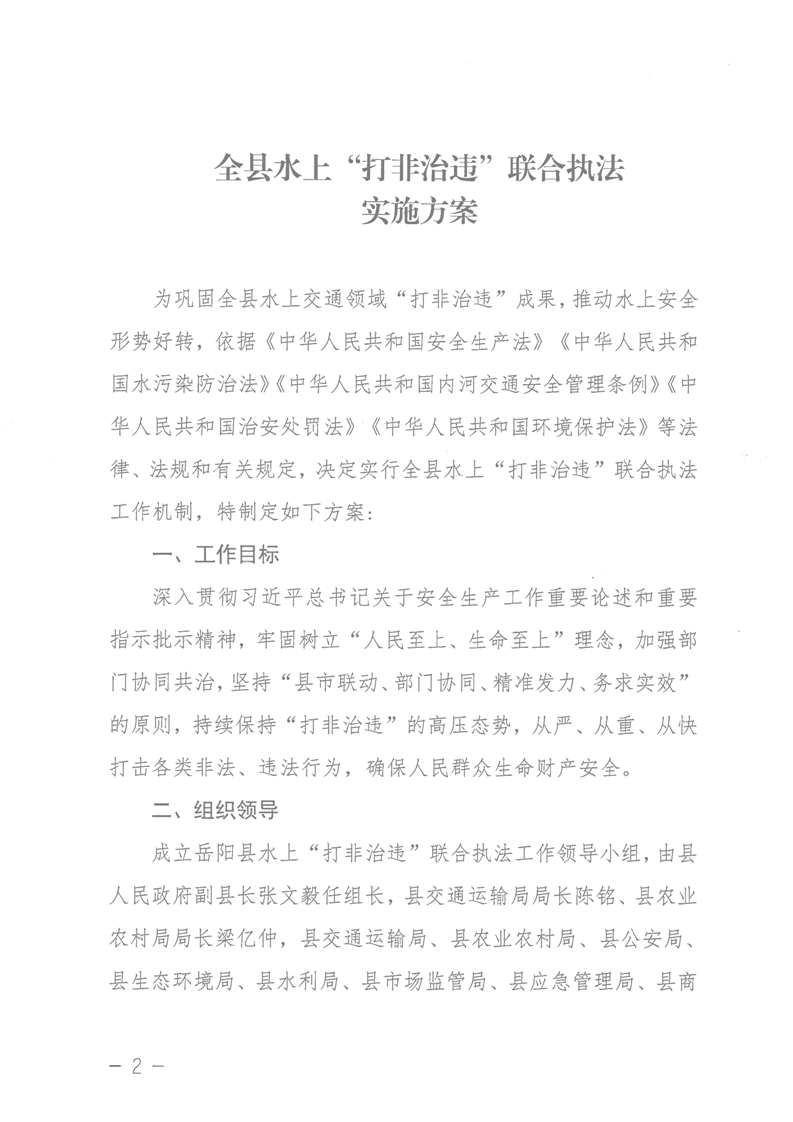 岳阳县水上“打非治违”联合执法实施方案