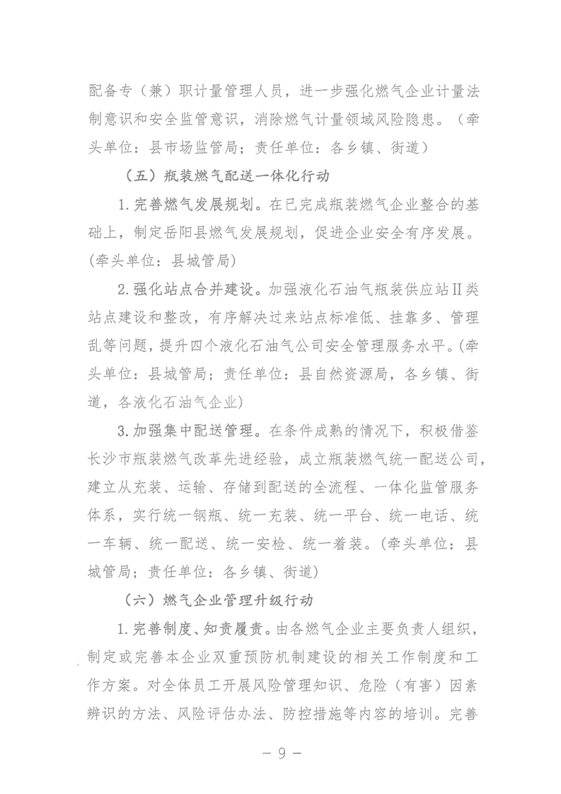 岳阳县城镇燃气安全整治和管理服务提升“十大行动”实施方案