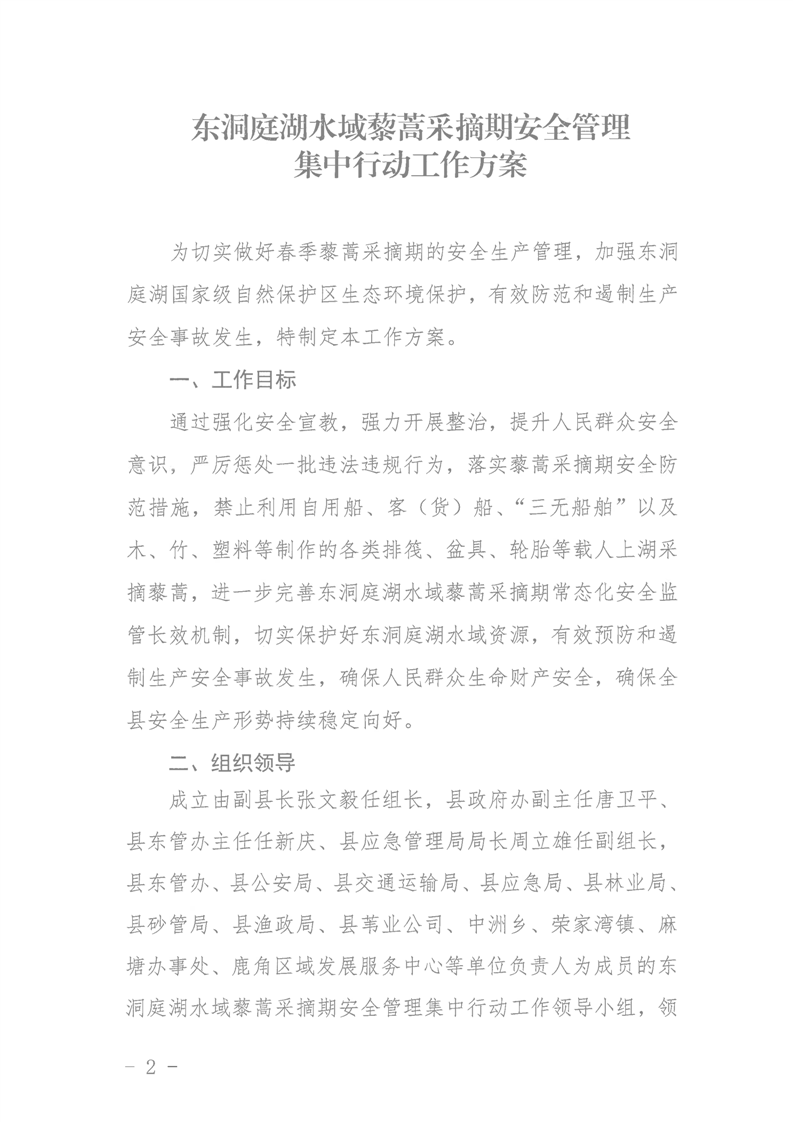 东洞庭湖水域藜蒿采摘期安全管理集中行动工作方案