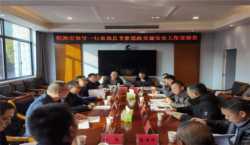 1月3日上午,临湘市副市长李伟一行来岳阳县考察道路交通安全工作,临湘市政府办副主任、交通问题顽瘴痼疾整治办主任刘毅,临湘市应急管理局局长李强华等领导参加。岳阳县副县长张文毅,县政府办副主任、交通顽瘴痼疾整治办主任任畅,应急管理局局长周立雄,相关部门副主任陪同。