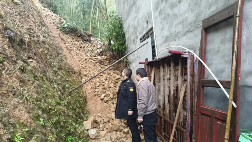 2月2日15时,张谷英镇倒溪村村支部书记陈伟荣接群众电话,说其屋后山坡有滑坡迹象。随即,陈伟荣与村干部李海波迅速赶至该村狮堂片仙人组赵芳荣家,发现屋后已有少量泥土与石块滑落,判断可能存在滑坡灾害风险,遂立即报告张谷英镇应急管理办。