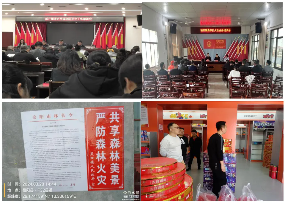 清明节临近,连日来,岳阳县各乡镇认真贯彻落实上级关于森林防灭火工作决策部署,采取专题会议研究部署、开展乡村党员干部和护林员培训、镇村干部进村入户敲门走访,“村村响”每日提醒警示,出动宣传车辆,装贴通告、标语,悬挂宣传横幅等形式,切实加强森林防火和文明祭扫宣传;组织应急、综治、市场、派出所、综合执法大队等部门站所执法人员对辖内烟花爆竹零售店全面开展节前安全生产督导检查,持续开展烟花爆竹打非治违行动,全力推进安全生产治本攻坚三年行动,守稳守牢安全生产底线。