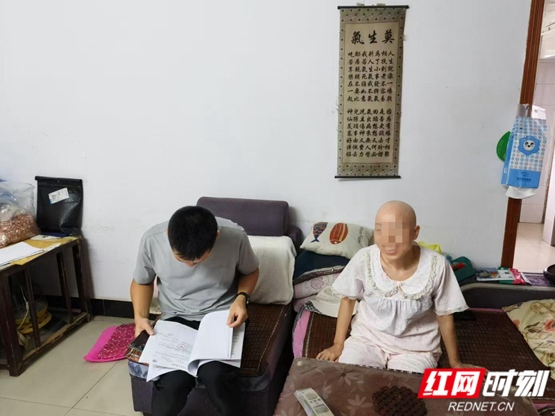 岳阳市岳阳县民政局工作人员入户走访宣传社会救助政策。