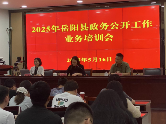 5月16日,岳阳县数据局组织召开全县政务公开暨政府门户网站、政务新媒体工作培训会,各乡镇(街道)及县直部门业务骨干参会。县数据局分管负责人出席会议,强调落实新要求、提升数字化管理能力的重要性,并针对当前政务公开存在问题提出改进建议。