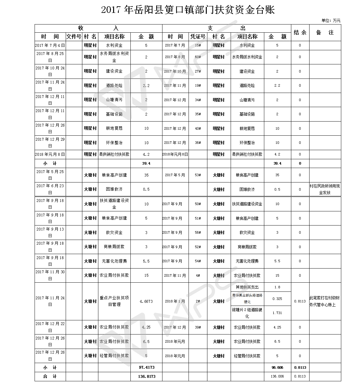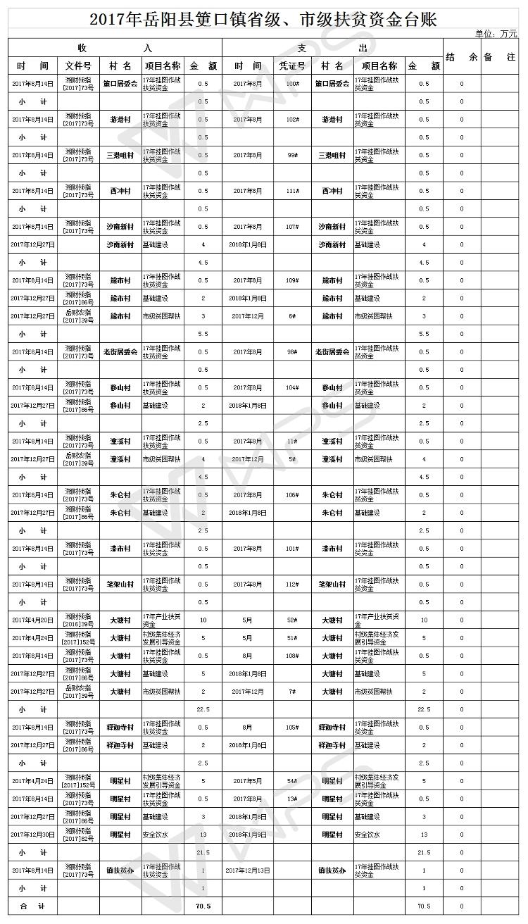 筻口镇财政扶贫资金台账