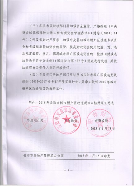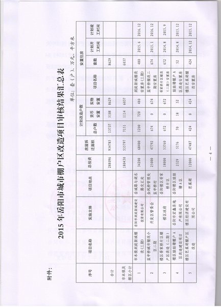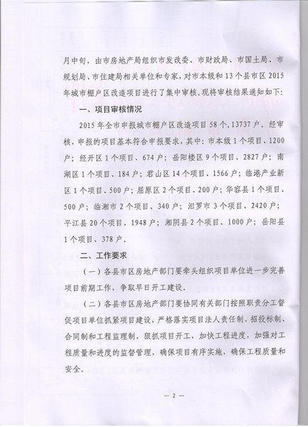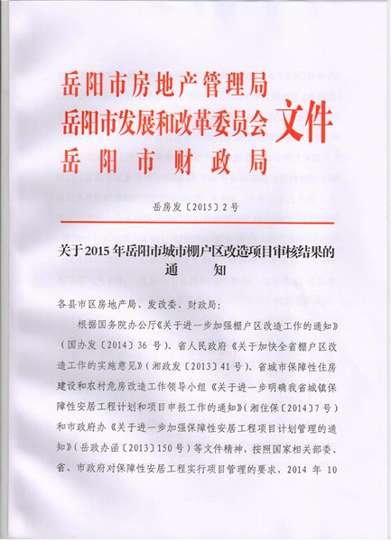 岳阳市2015年城市棚户区改造项目审核结果