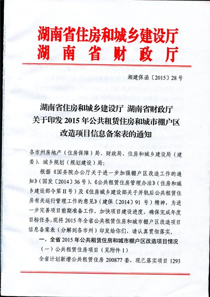 湖南省2015年公共租赁住房和城市棚户区改造项目信息备案表