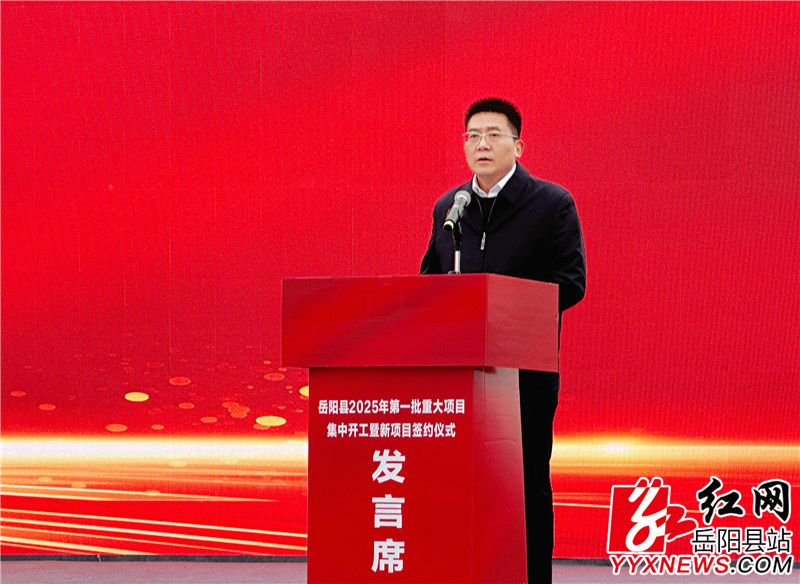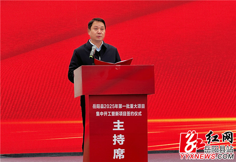 岳阳县融媒体中心3月7日讯(记者 付琴 熊佳 周星亮)春潮涌动洞庭畔,战鼓催征马蹄疾。3月7日,岳阳县举行2025年第一批重大项目集中开工暨新项目签约仪式,这既是贯彻落实市委、市政府“大抓招商、大抓项目、大抓发展”要求的具体行动,也是加快推进“四区”建设、奋力谱写岳阳县高质量发展新篇章的重要举措。市人民政府副市长陈阁辉出席并宣布开工。市人民政府副秘书长樊卫出席,县委书记肖湘晖出席并致辞,县委副书记、县长吴光文主持开工仪式。
