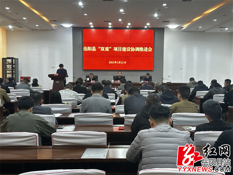 岳阳县融媒体中心3月21日讯(记者 周星亮)3月21日,我县召开“双重”项目建设协调推进会,副县长胡海平出席并讲话。