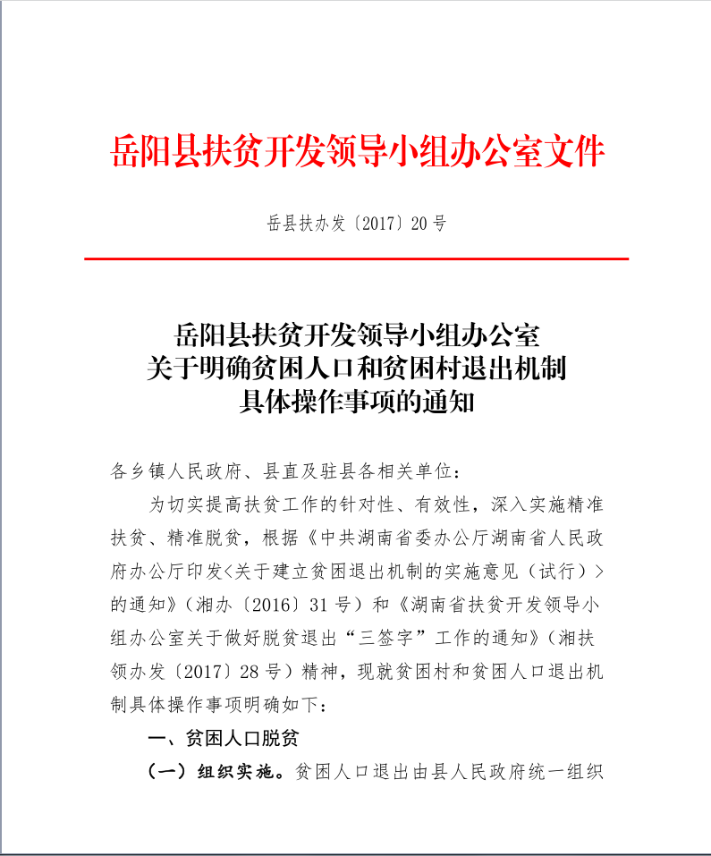 关于明确贫困人口和贫困村退出具体操作事项的通知