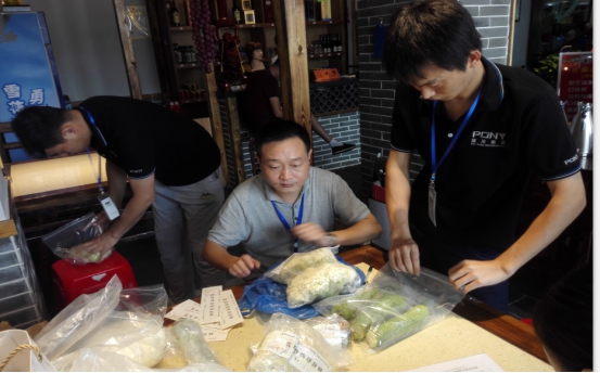 执法人员比对了应抽取品种的进货来源、数量、时间等信息,按规定重量和份数称取并包装后,准确、客观、完整地填写餐饮服务食品安全监督抽验采样记录。抽样记录分别加盖抽样单位和被抽样单位公章,并由抽样人员和被抽样单位陪同人员签字。包装好的样品贴上封条标志着抽样顺利完成。