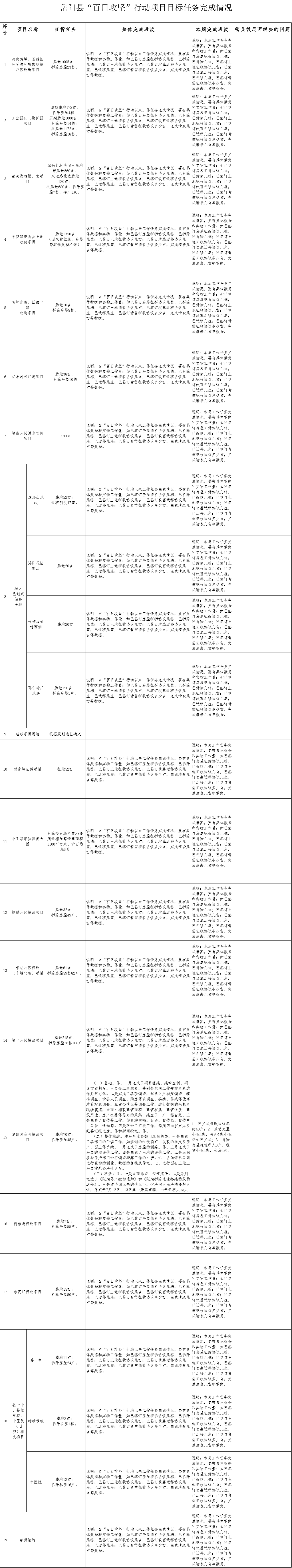 岳阳县“百日攻坚”行动项目目标任务完成情况