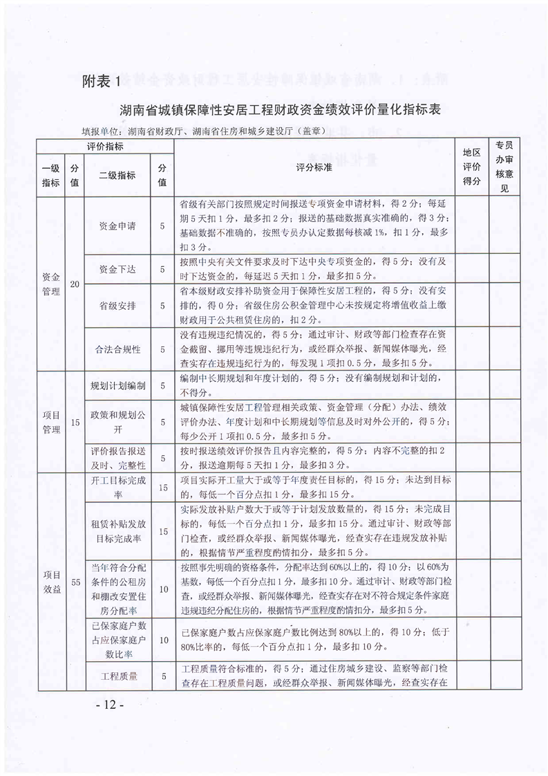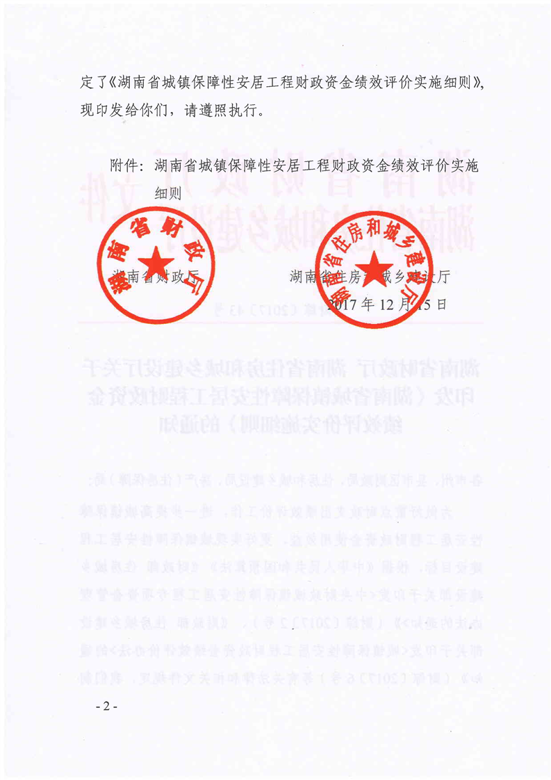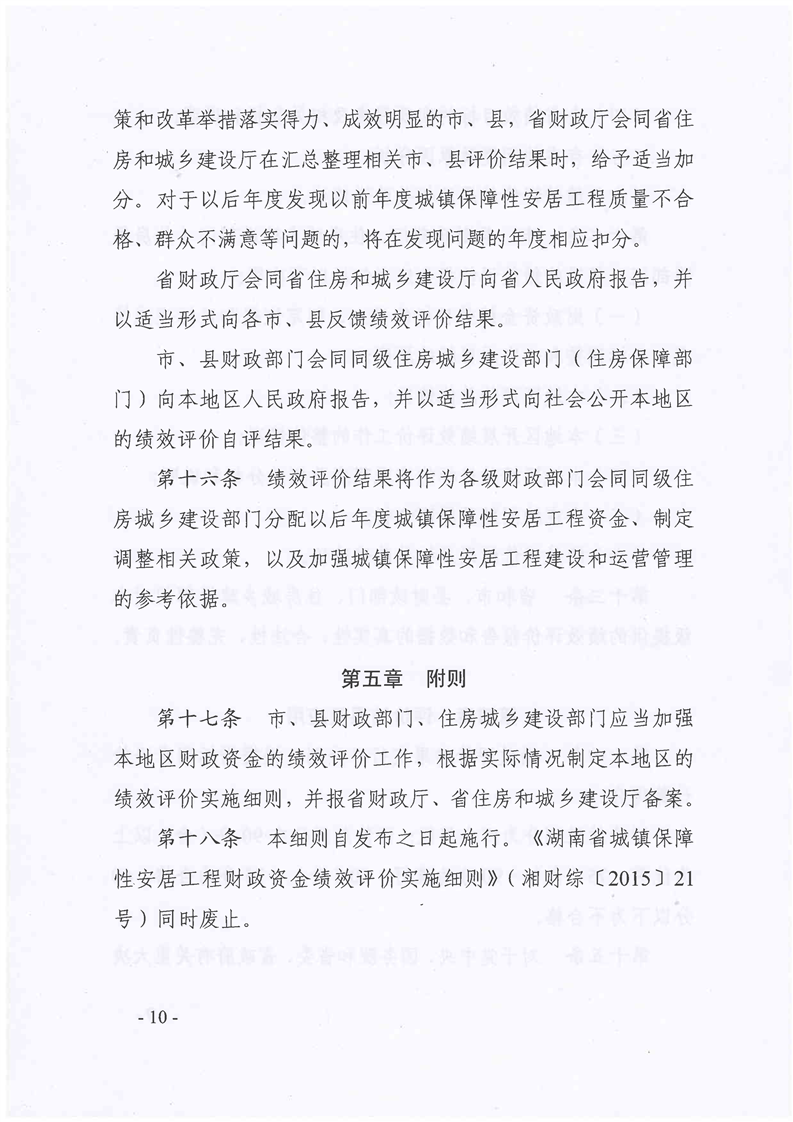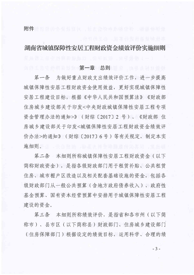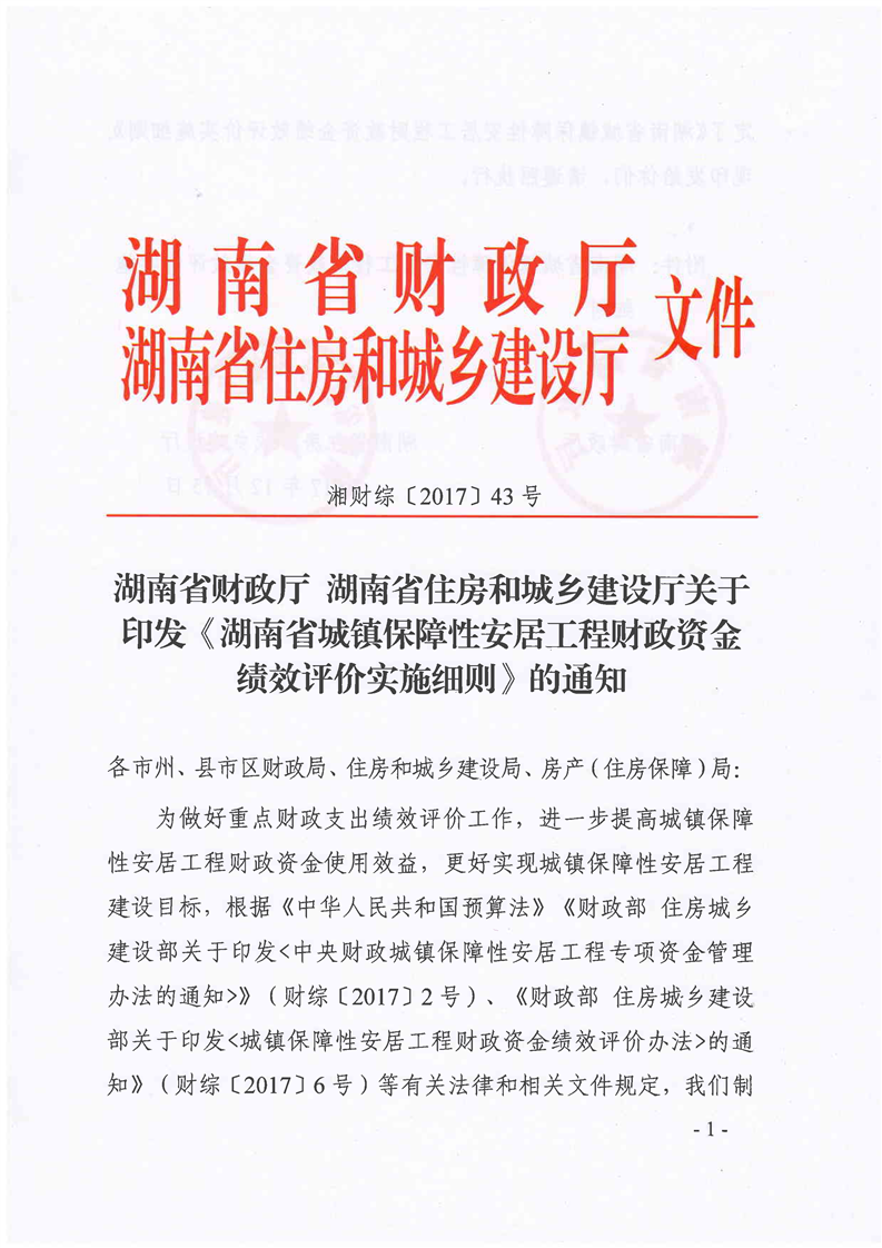 湖南省城镇保障性安居工程财政资金绩效评价实施细则(湘财综〔2017〕43号)