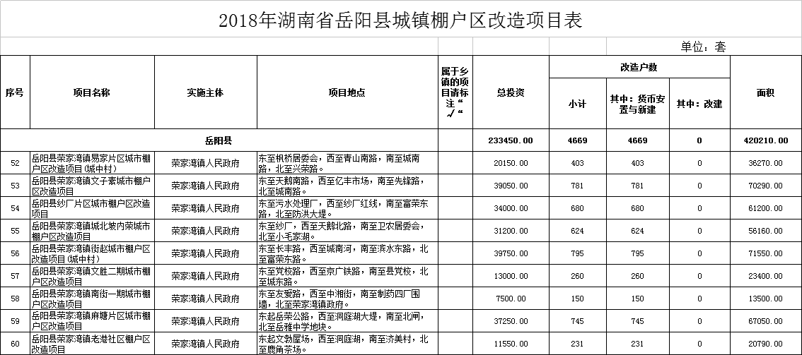 2018年湖南省岳阳县城镇棚户区改造项目表