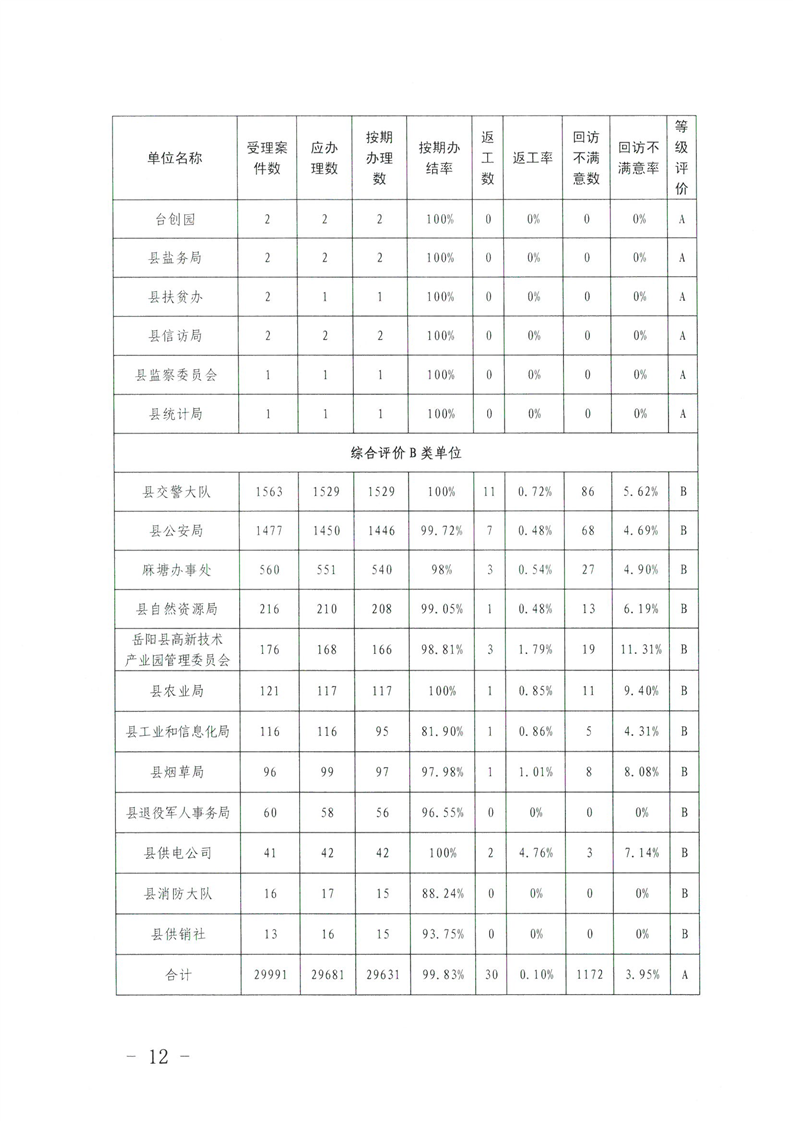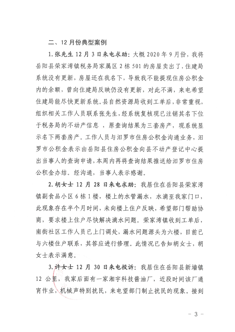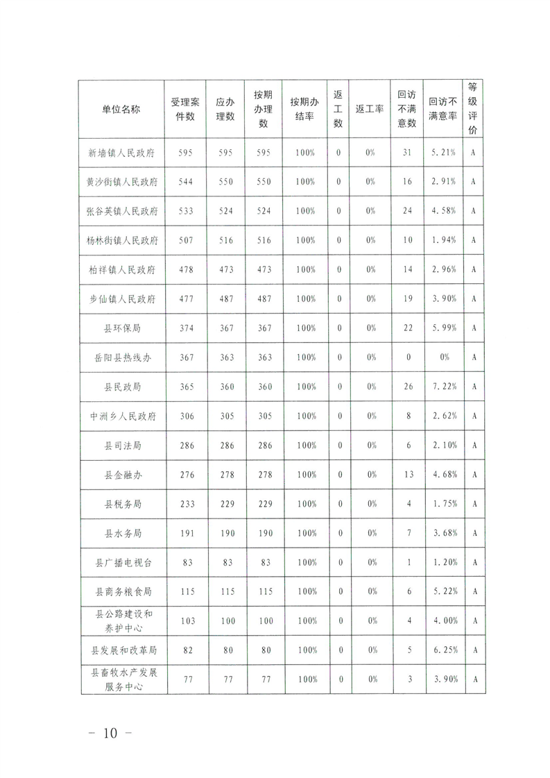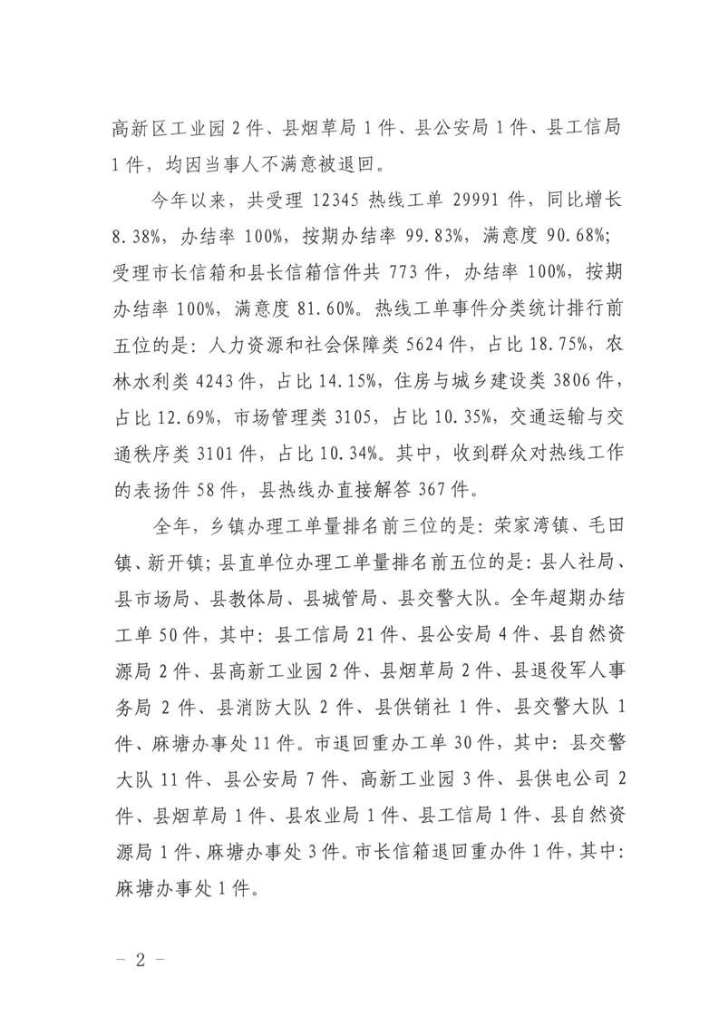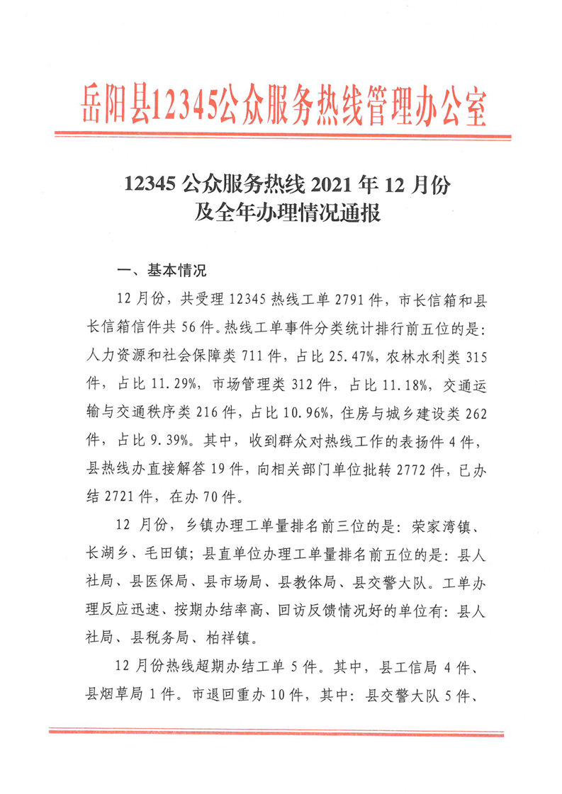 岳阳县12345公众服务热线2021年12月份及全年办理情况通报