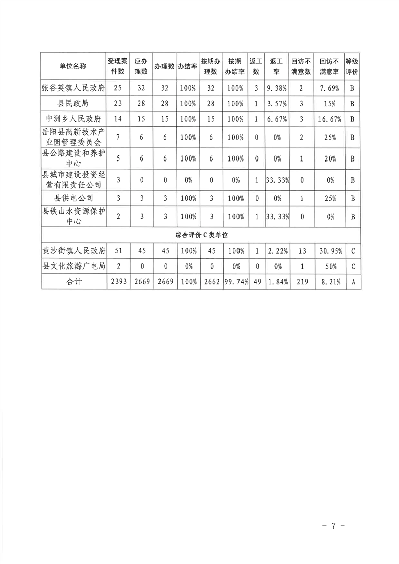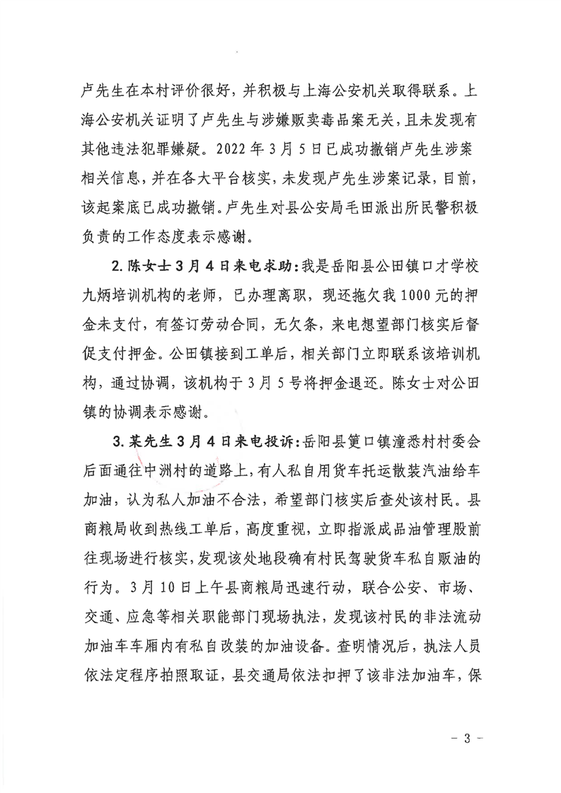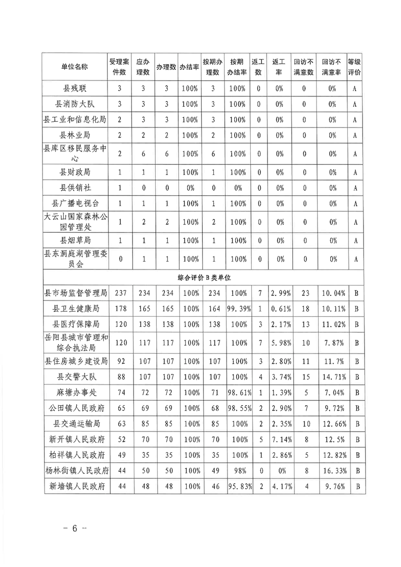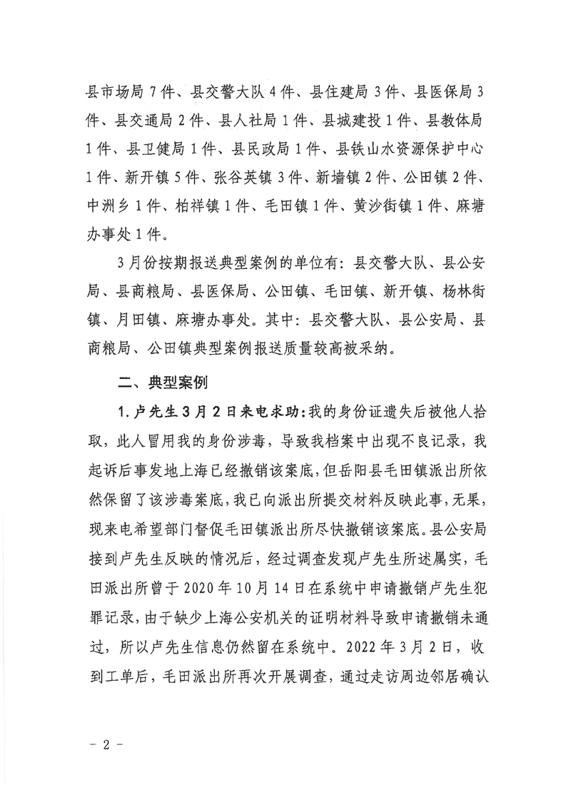 岳阳县12345公众服务热线2022年3月办理情况通报