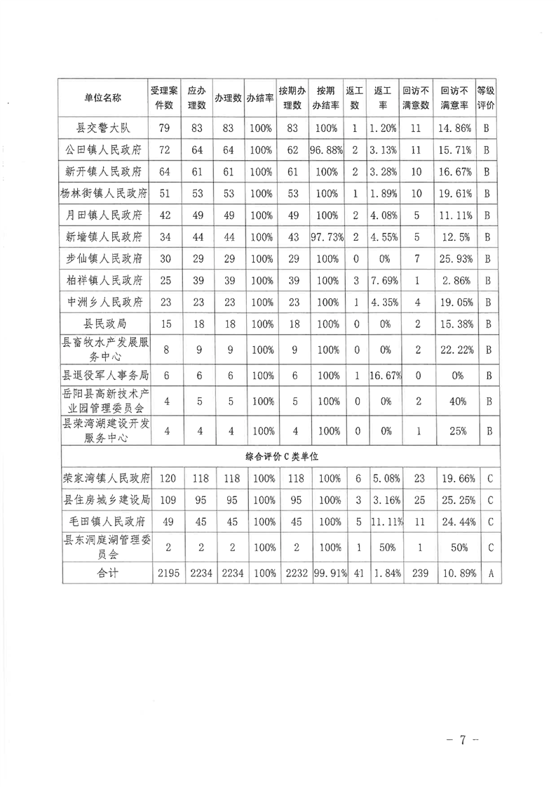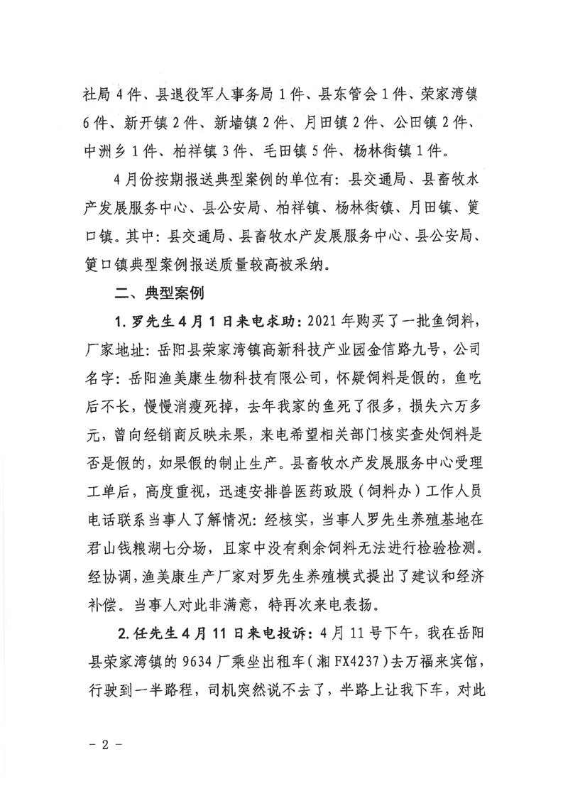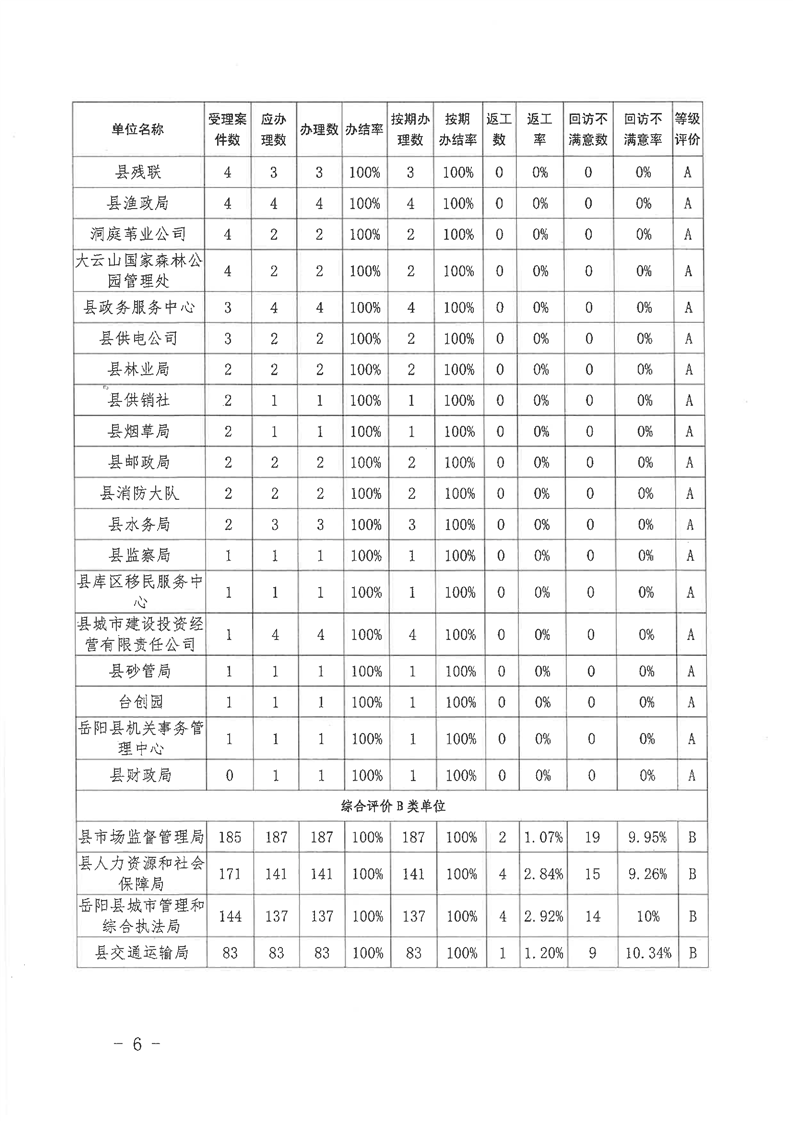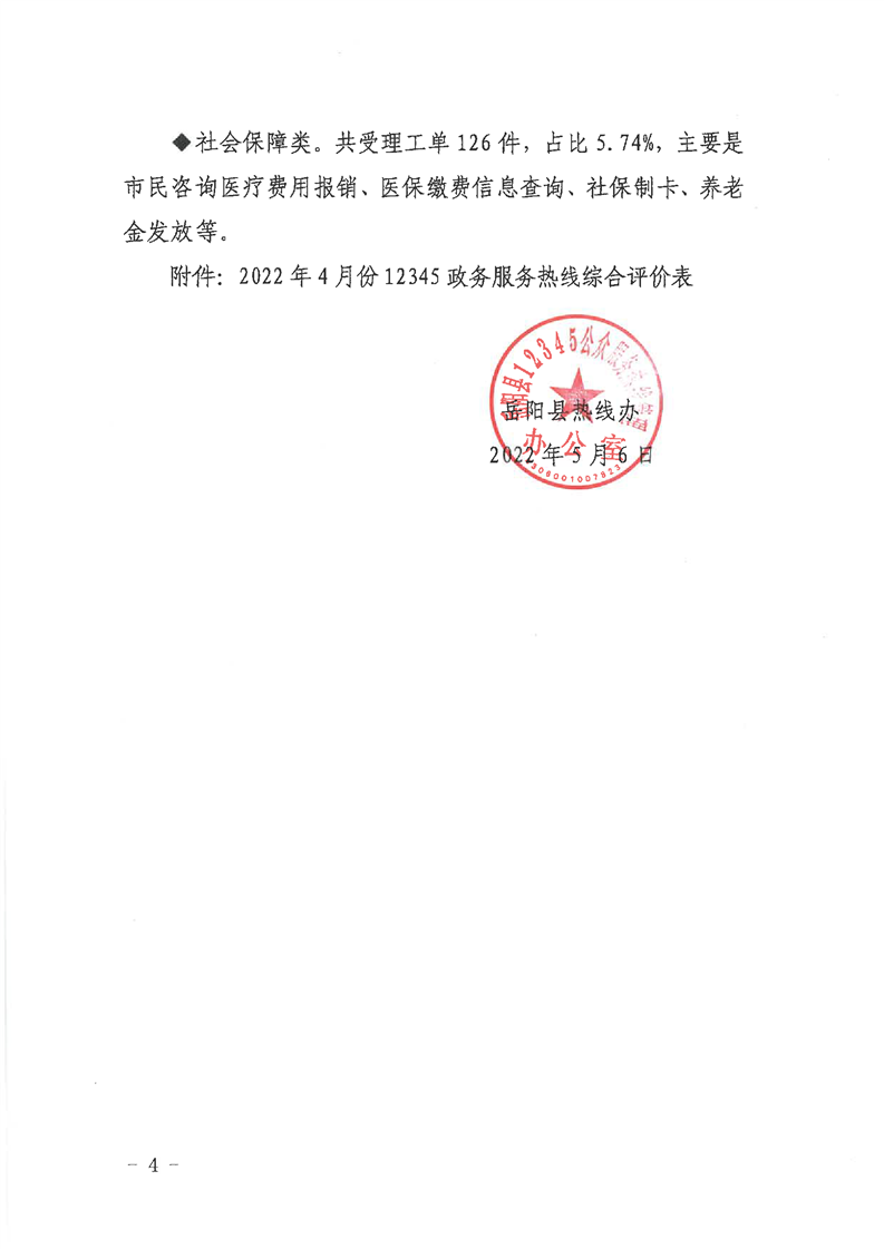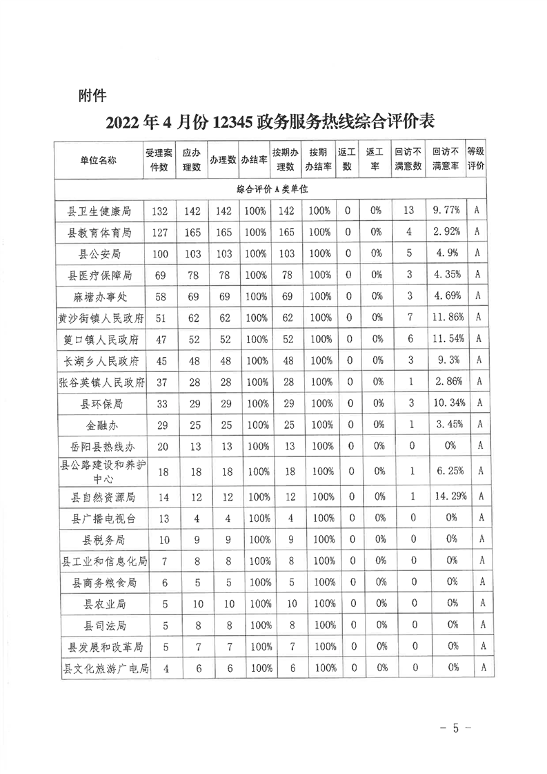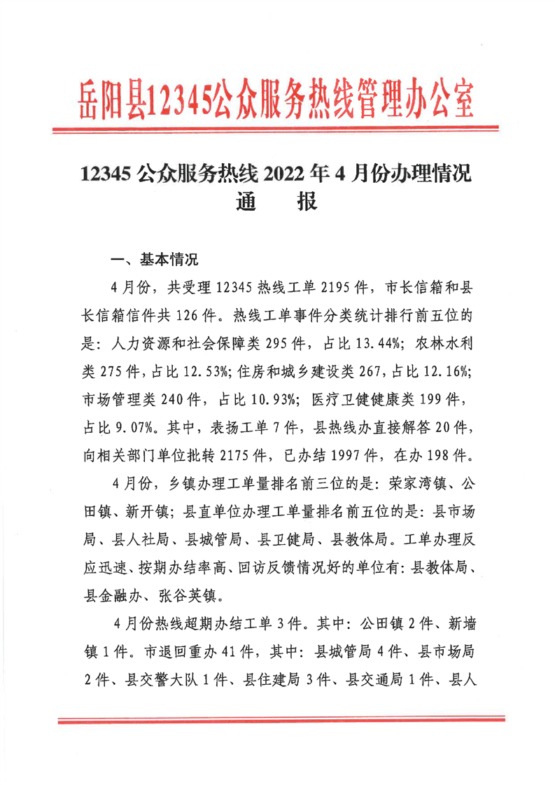 岳阳县12345公众服务热线2022年4月办理情况通报