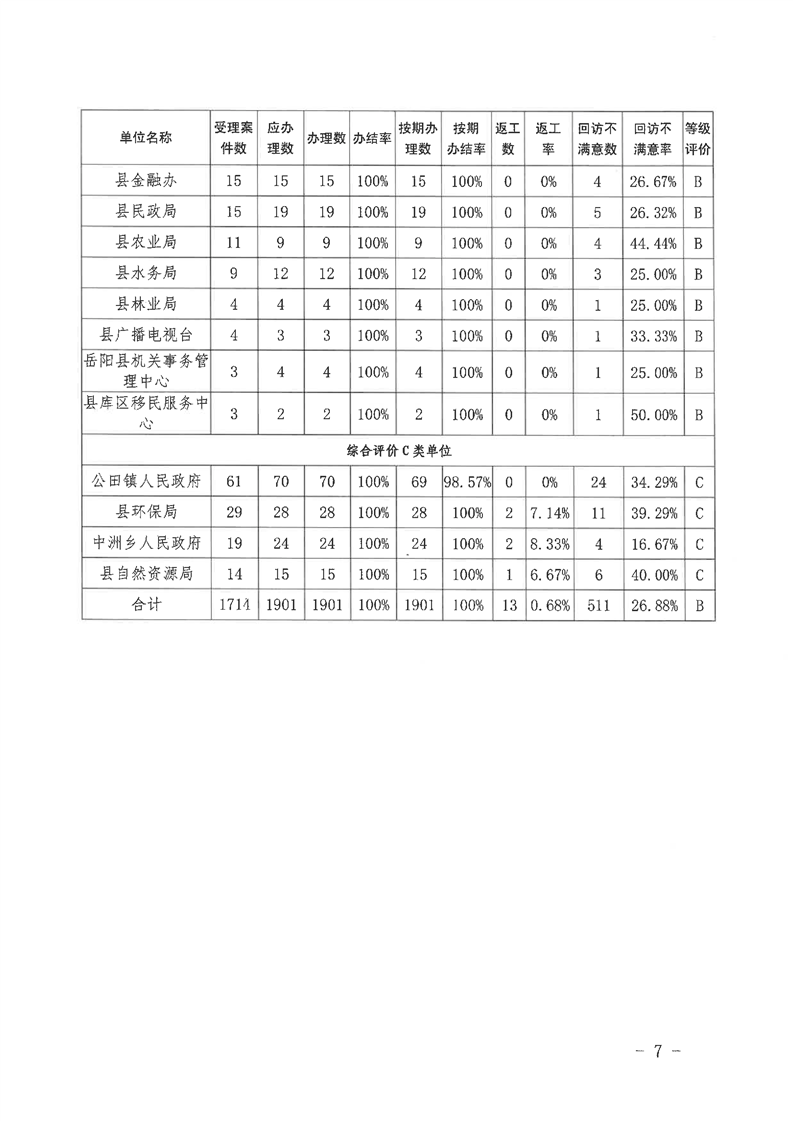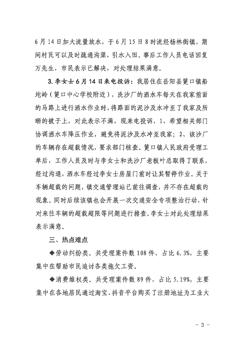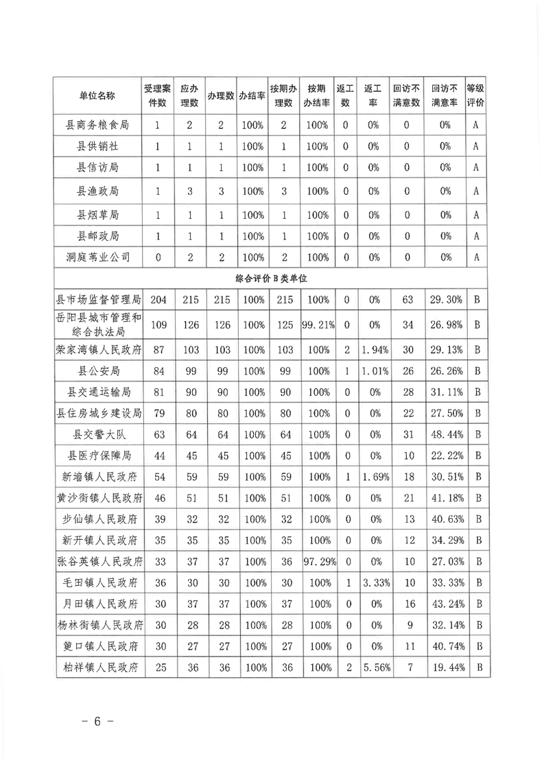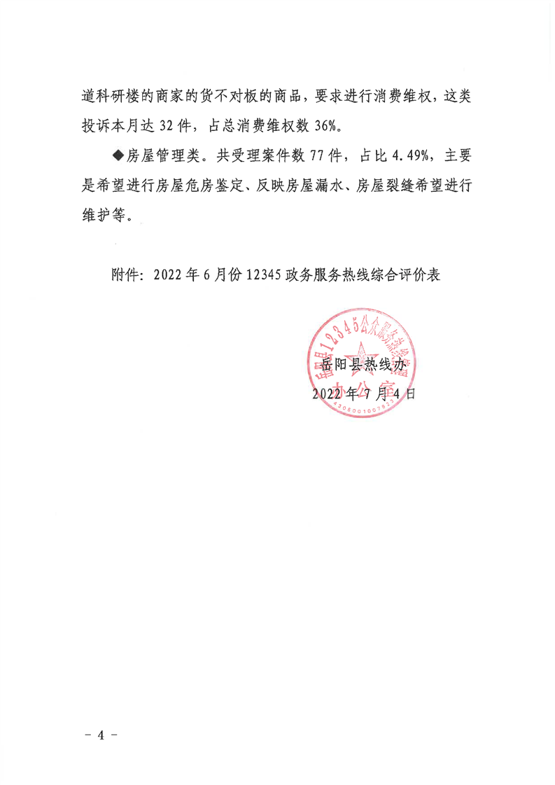 岳阳县12345公众服务热线2022年6月办理情况通报