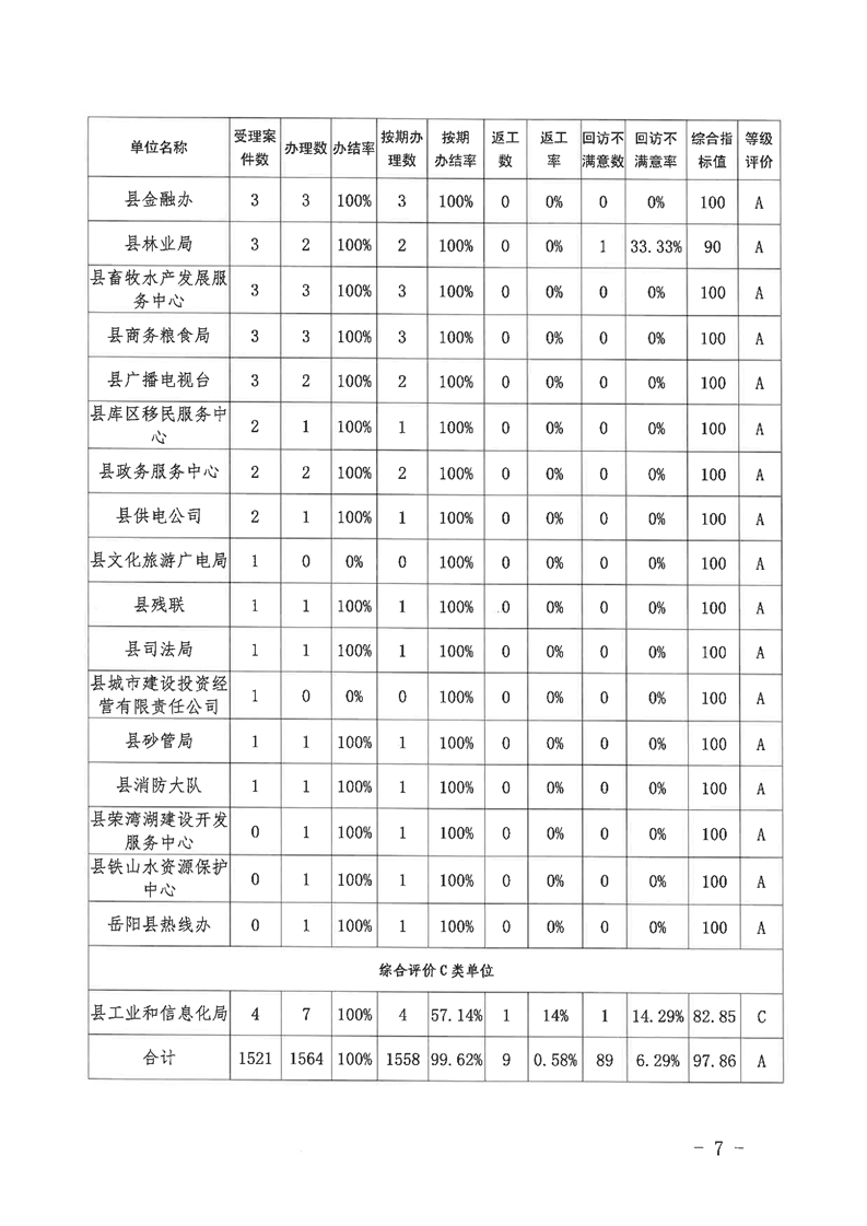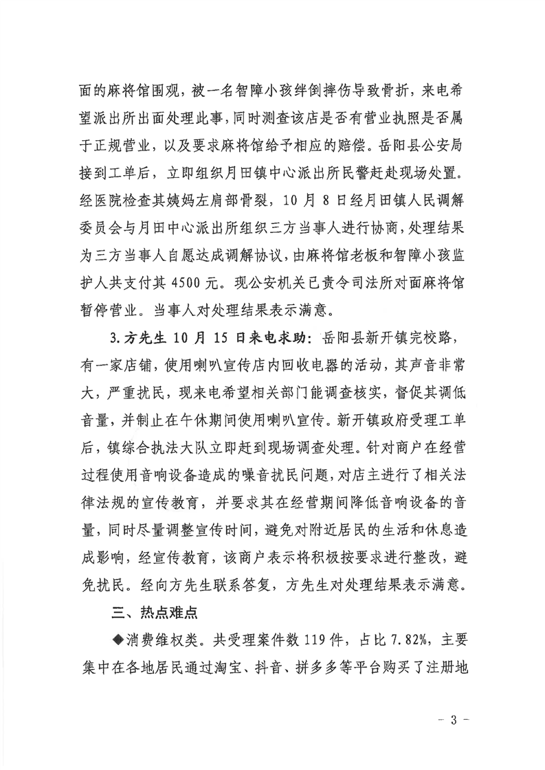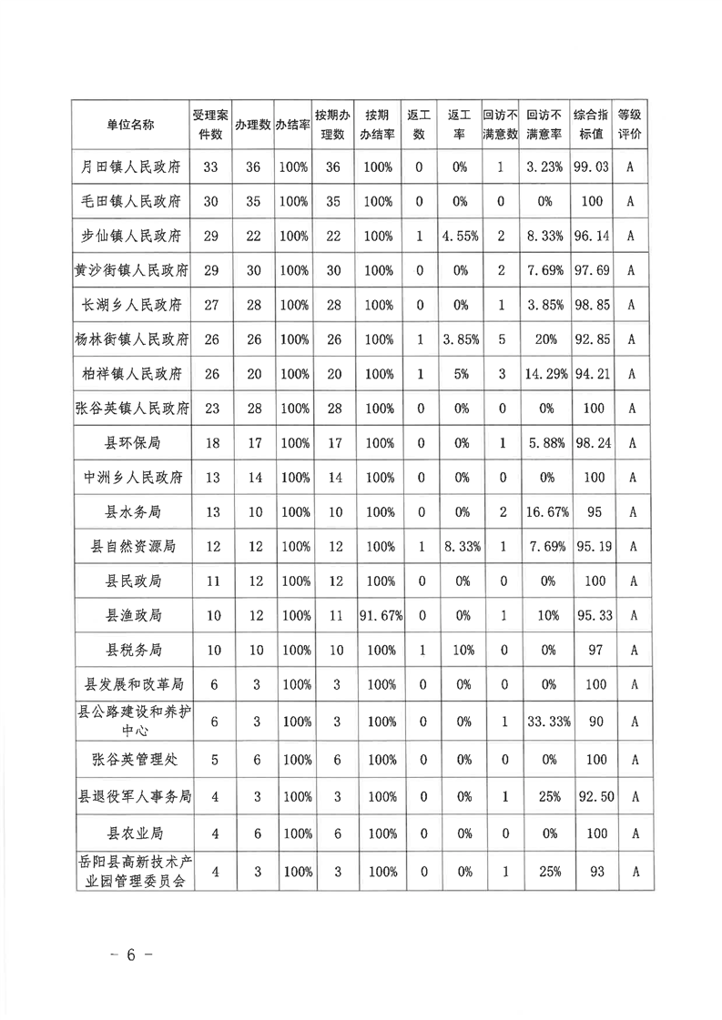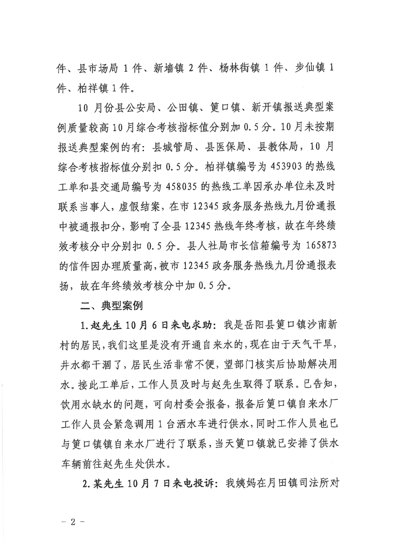 岳阳县12345公众服务热线2022年10月办理情况通报