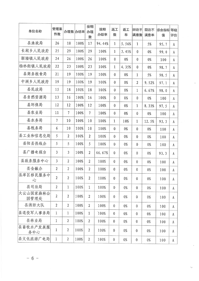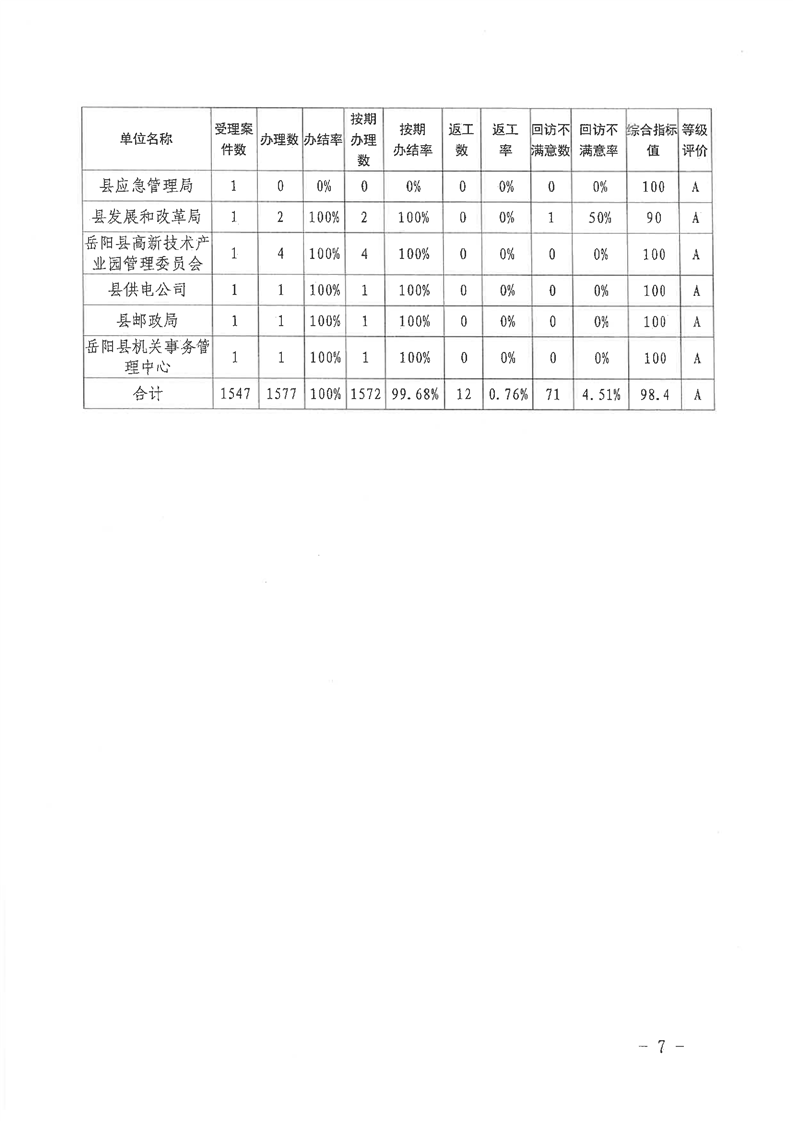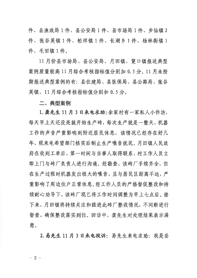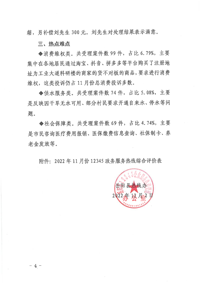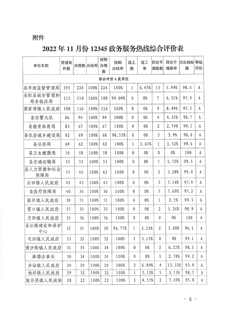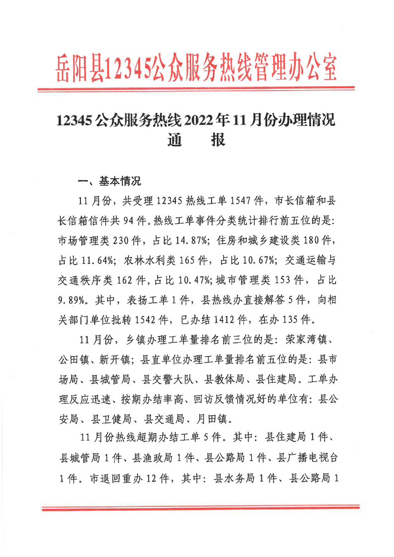 岳阳县12345公众服务热线2022年11月办理情况通报