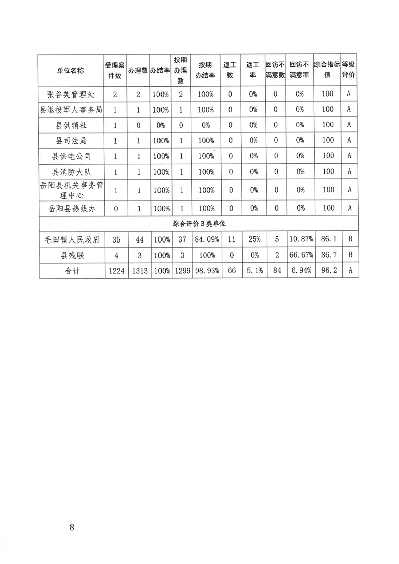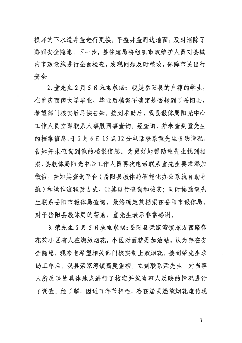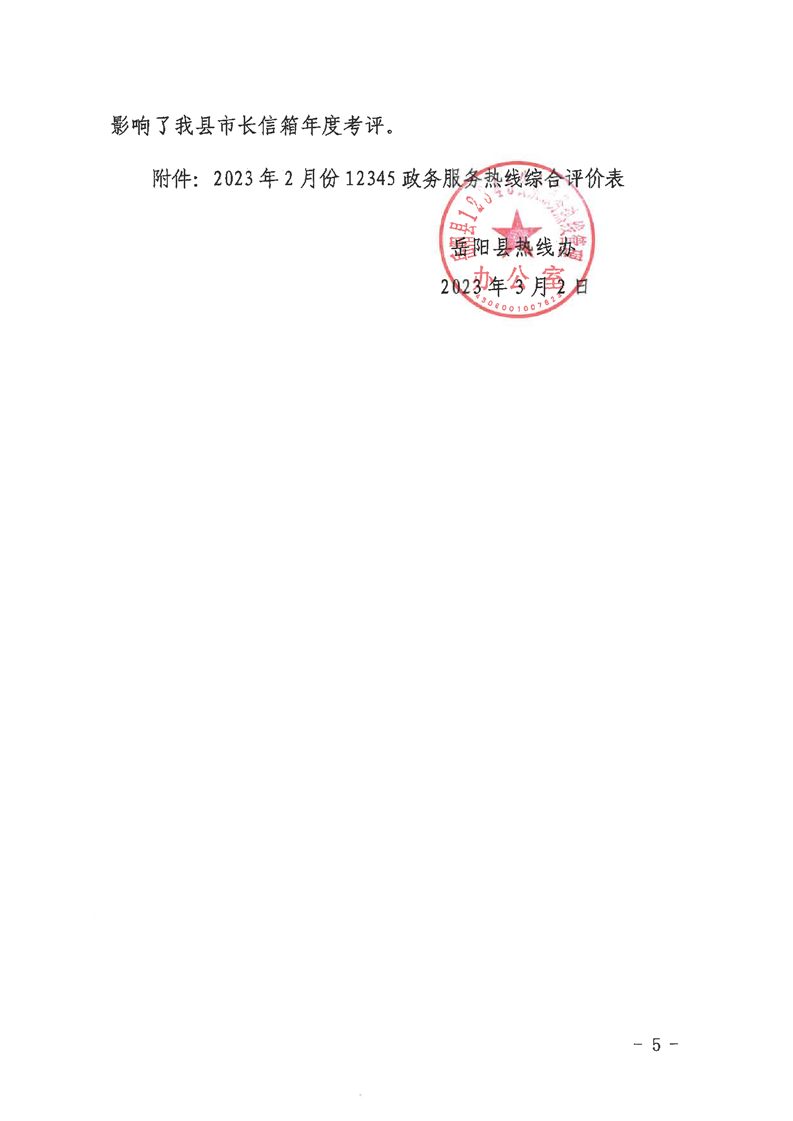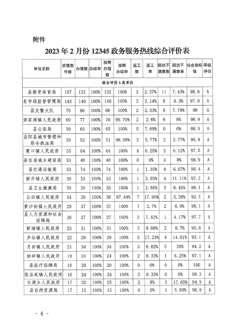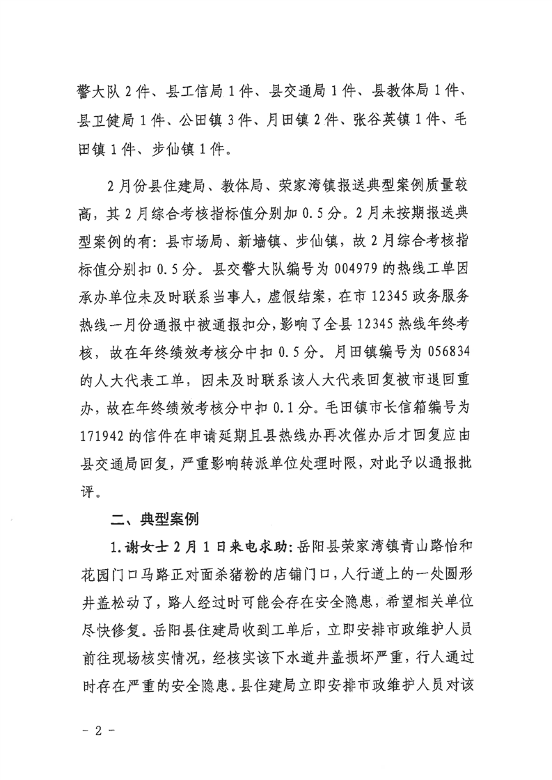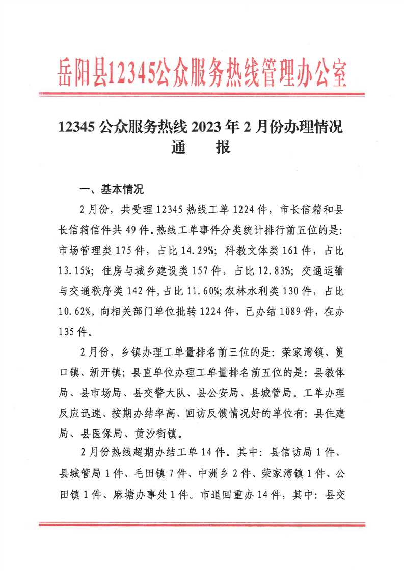 岳阳县12345公众服务热线2023年2月办理情况通报