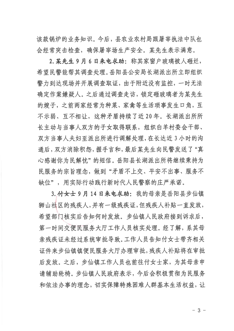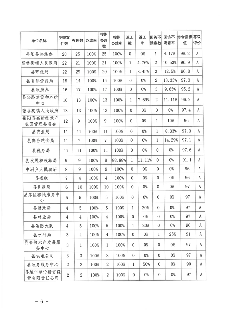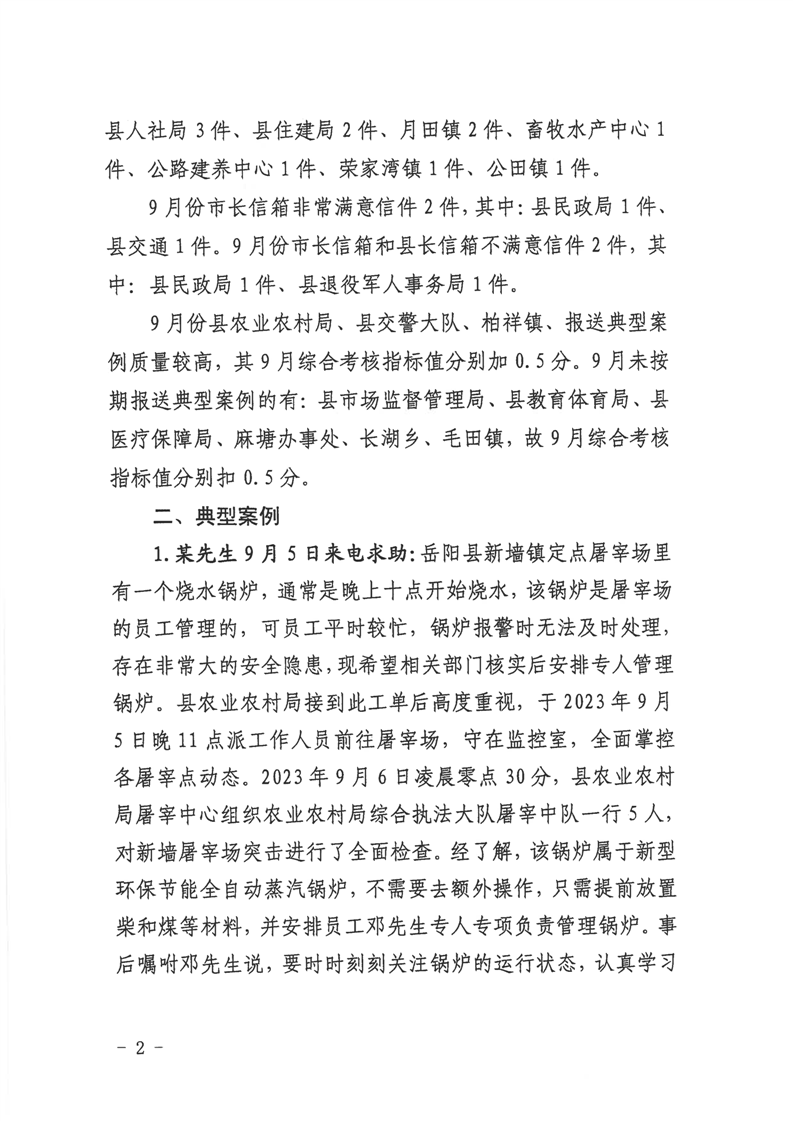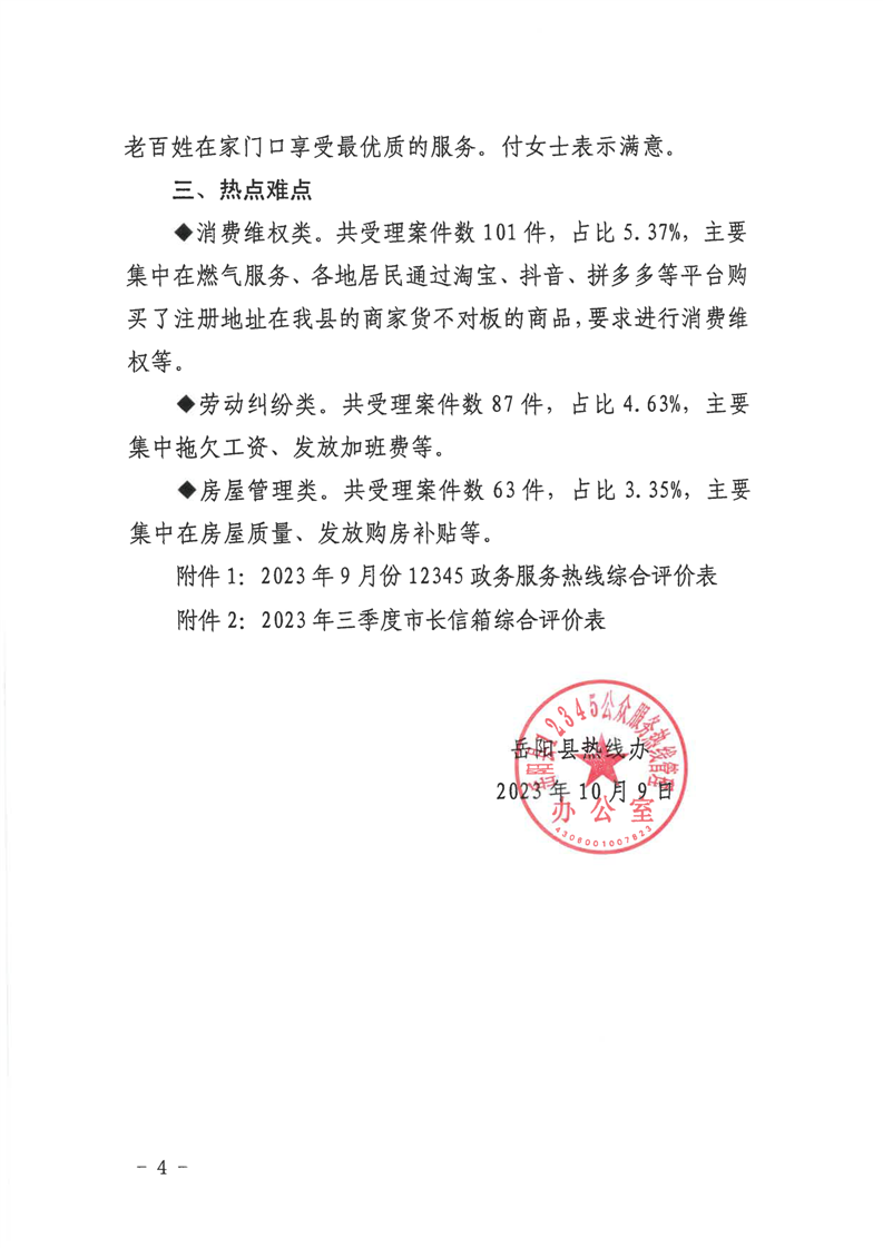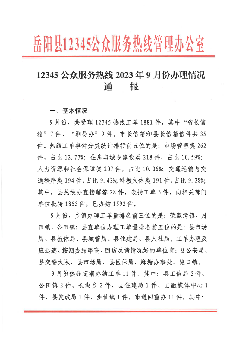 岳阳县12345公众服务热线2023年9月份办理情况通报