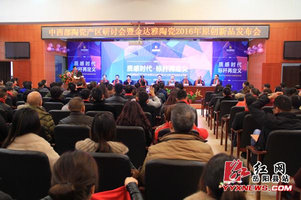 12-11,中国中西部陶瓷产区研讨会暨金达雅2016-新品发布会在我县建材工业园天欣科技举行。市委常委、组织部长、统战部长王瑰曙,原省商务厅厅长毛叙保,市政协副主席刘晓英,县委书记毛知兵等领导出席。