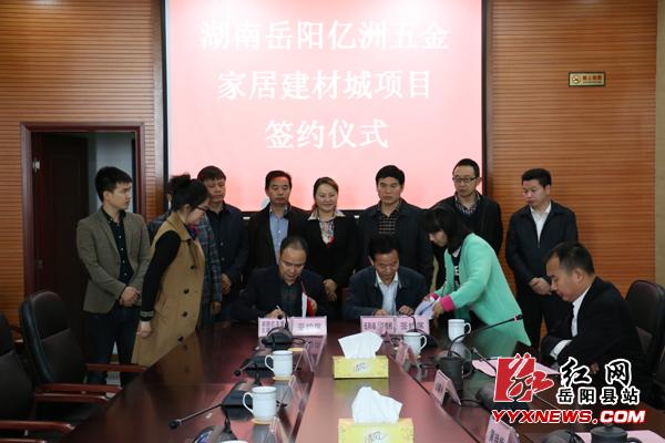 红网岳阳县站11月13日讯(分站记者 陈嵬 通讯员 梁科)11月13日,湖南岳阳亿洲五金家居建材城项目在县政务服务中心举行签约仪式,正式落户我县。县委常委、副县长黄艳娥,人大常委会副主任张艳生,副县长刘曙光出席签约仪式。