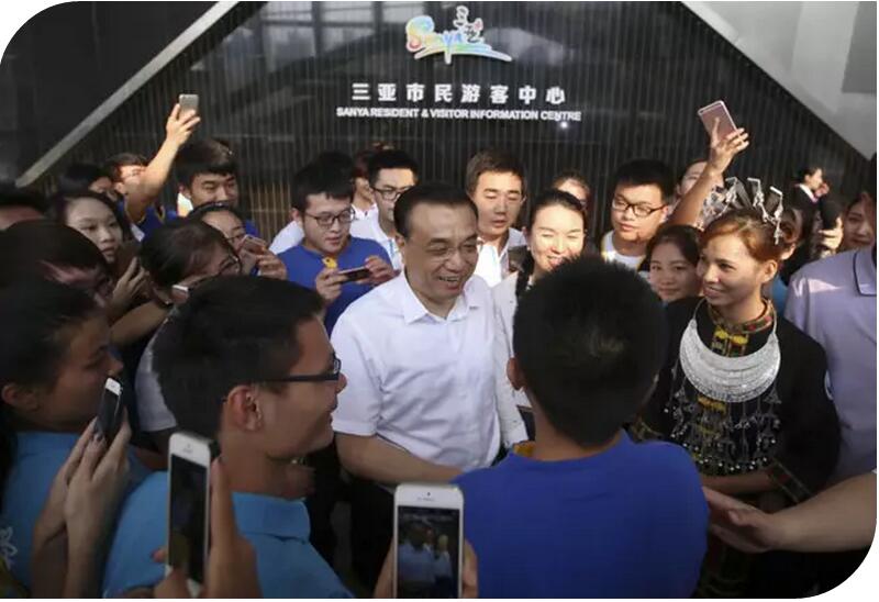 2016-3-,李克强总理在三亚市民游客中心考察时说,海南不仅要完善旅游设施“硬件”,同时要全面提升服务“软件”。现代旅游业不仅是服务业,它涵盖一二三全部产业。作为国际旅游岛,海南要把现代旅游业做优做强,以此带动一二三产业全面升级。
