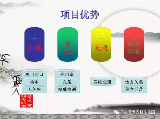 根据公司对该项目的整体规划与定位:项目将集“青少-夏令营及国防教育基地、生态种植养殖基地、酒店会务接待、观光游乐”四大功能区为一体。充分依托“四位一体”模式进行开发,并重点推动乡村文化旅游基地及青少-国防科普教育基地的建设。
