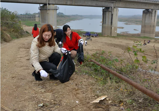 “冬天爱上了你,这静静歌唱的河水,你清澈的眸子里写满了故事,血液里流淌着文化。于是,我们带上洁白手套,捡走那些可能会玷污你的垃圾……”