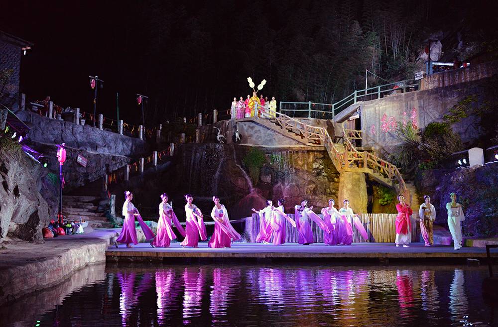 夜晚降临后,在水云轩高山峡谷剧场由毛田父老乡亲自己打造的《相思恋》为家乡人做汇报演出,更是将人们带入浪漫、光影魔幻的意境,艺术家们将东洞庭湖区本土文化、生活挖掘,以艺术、文艺的形式展现人们对美好生活的向往,弘扬勤劳、勇敢、善良的道德本质。